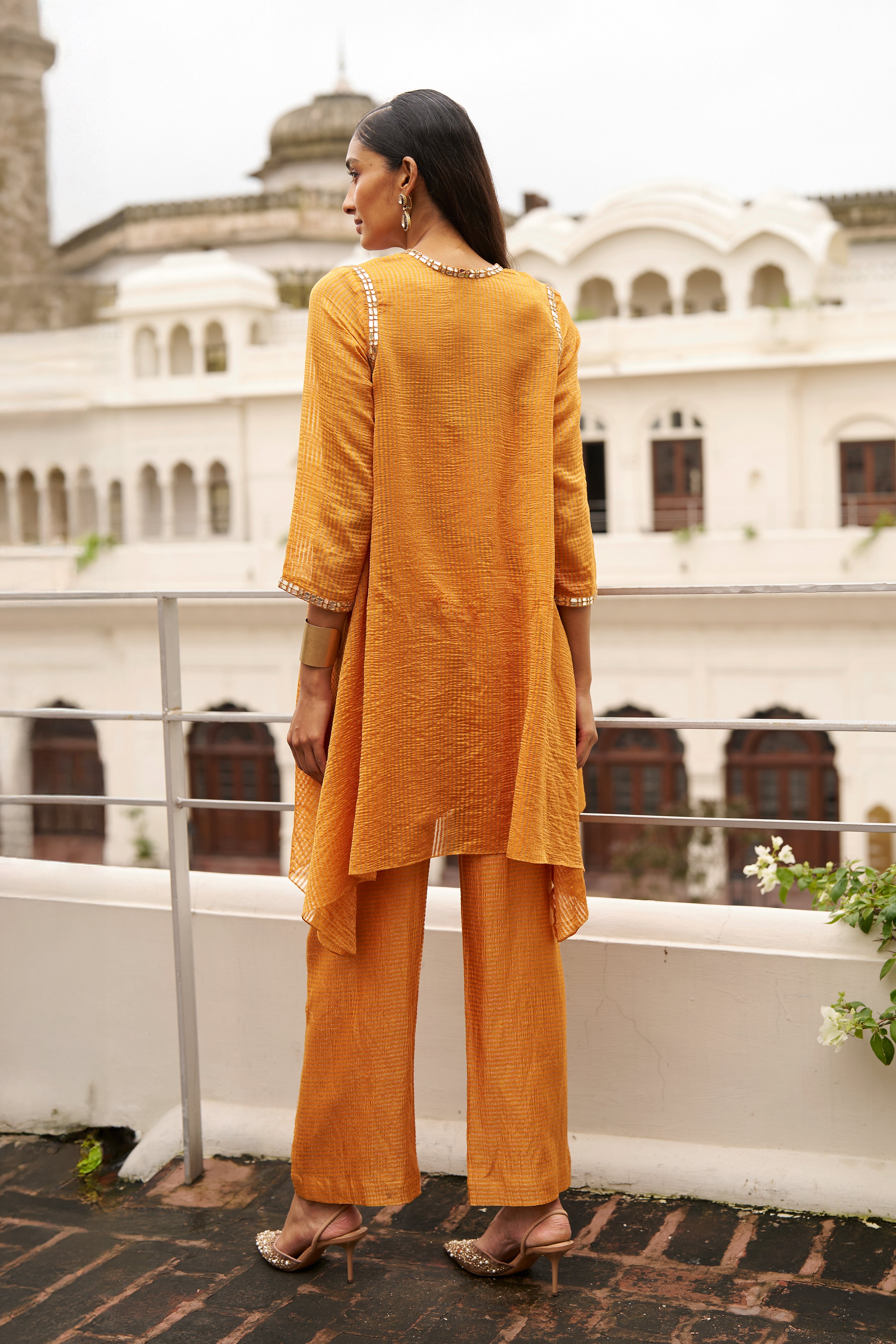 Eclectic Yellow Bird Flock Top and Dhoti Skirt Set