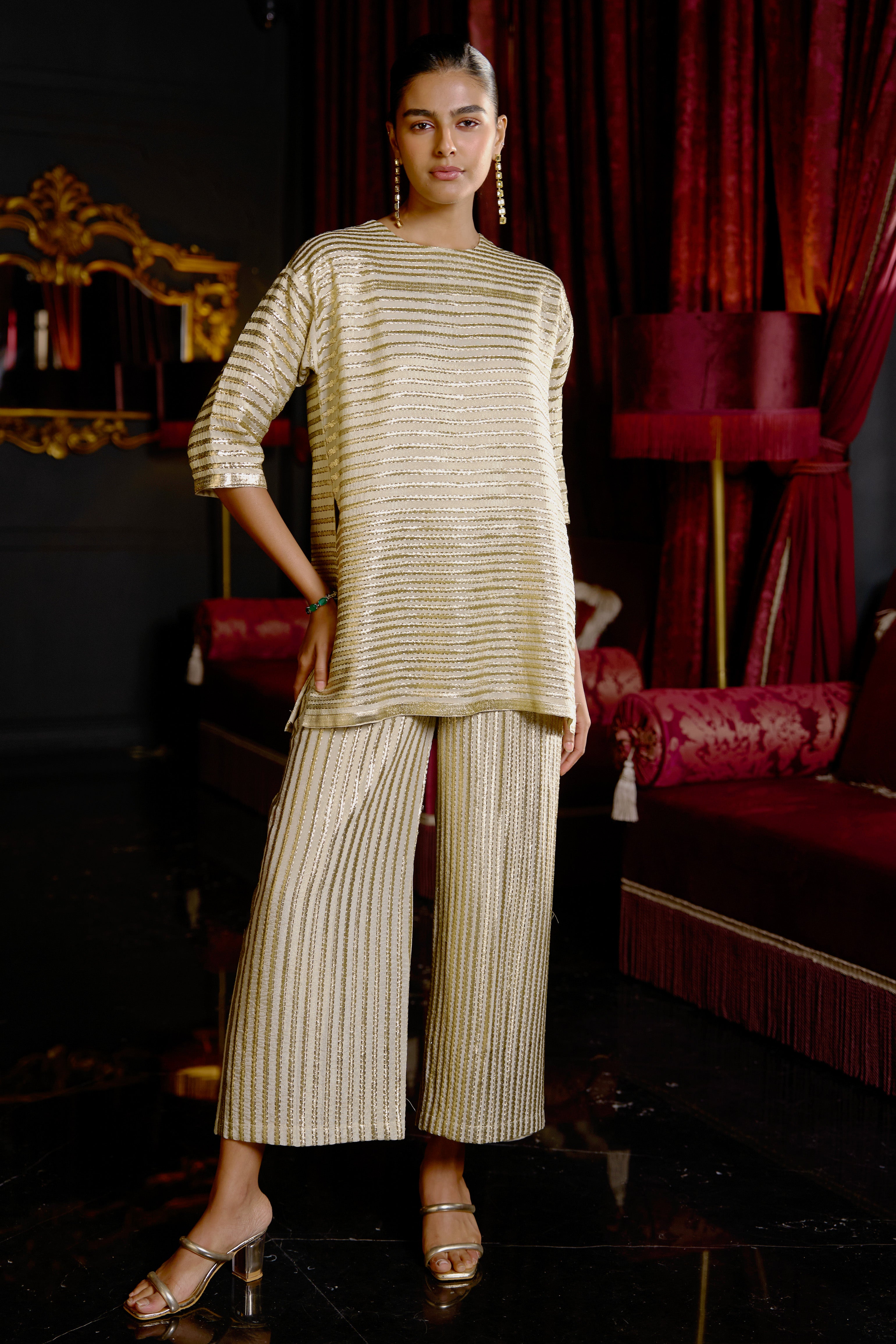LINEN EMBROIDERED PANT SET WITH SHAWL