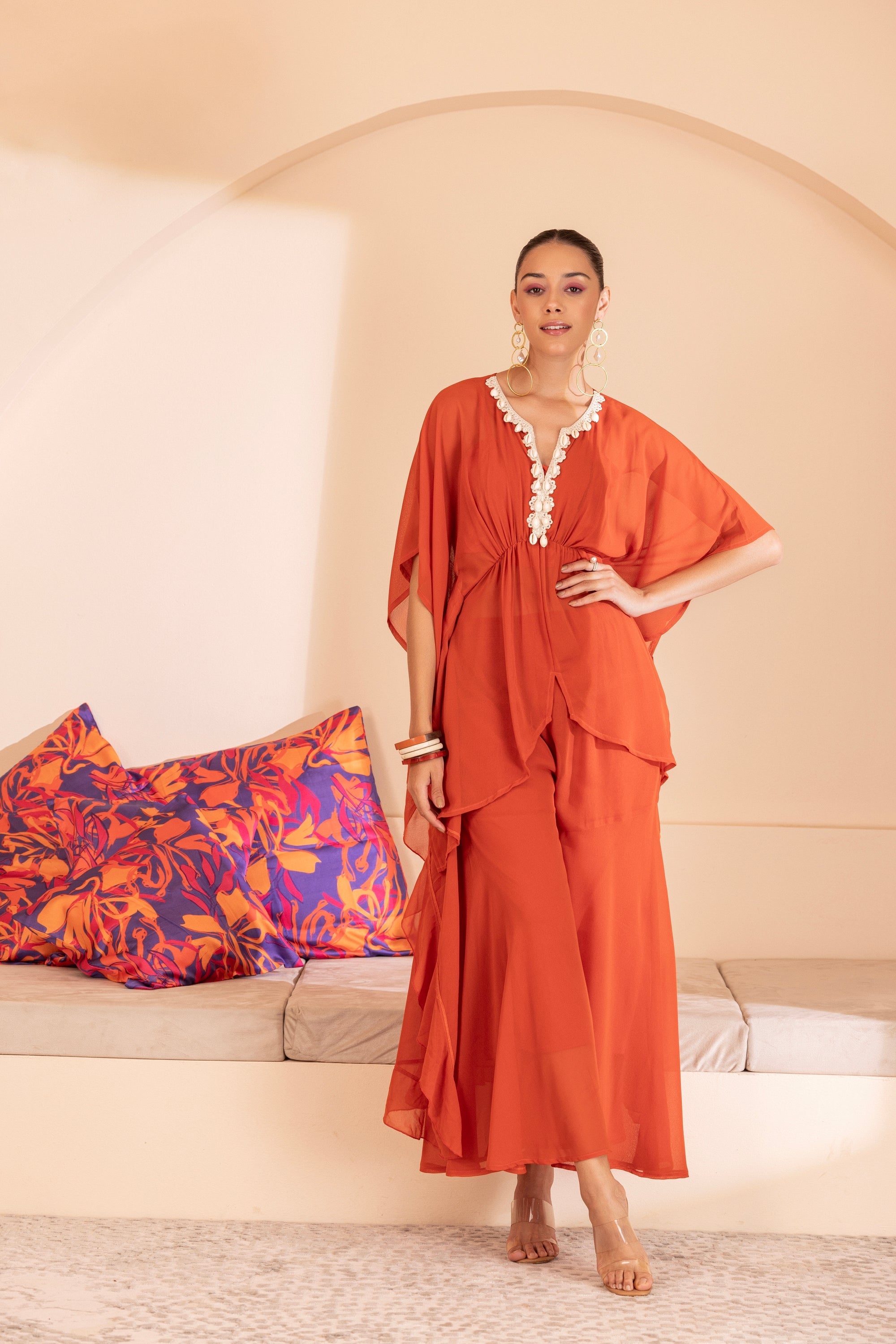 RUST SHELL EMBELISHED KAFTAN ENSEMBLE