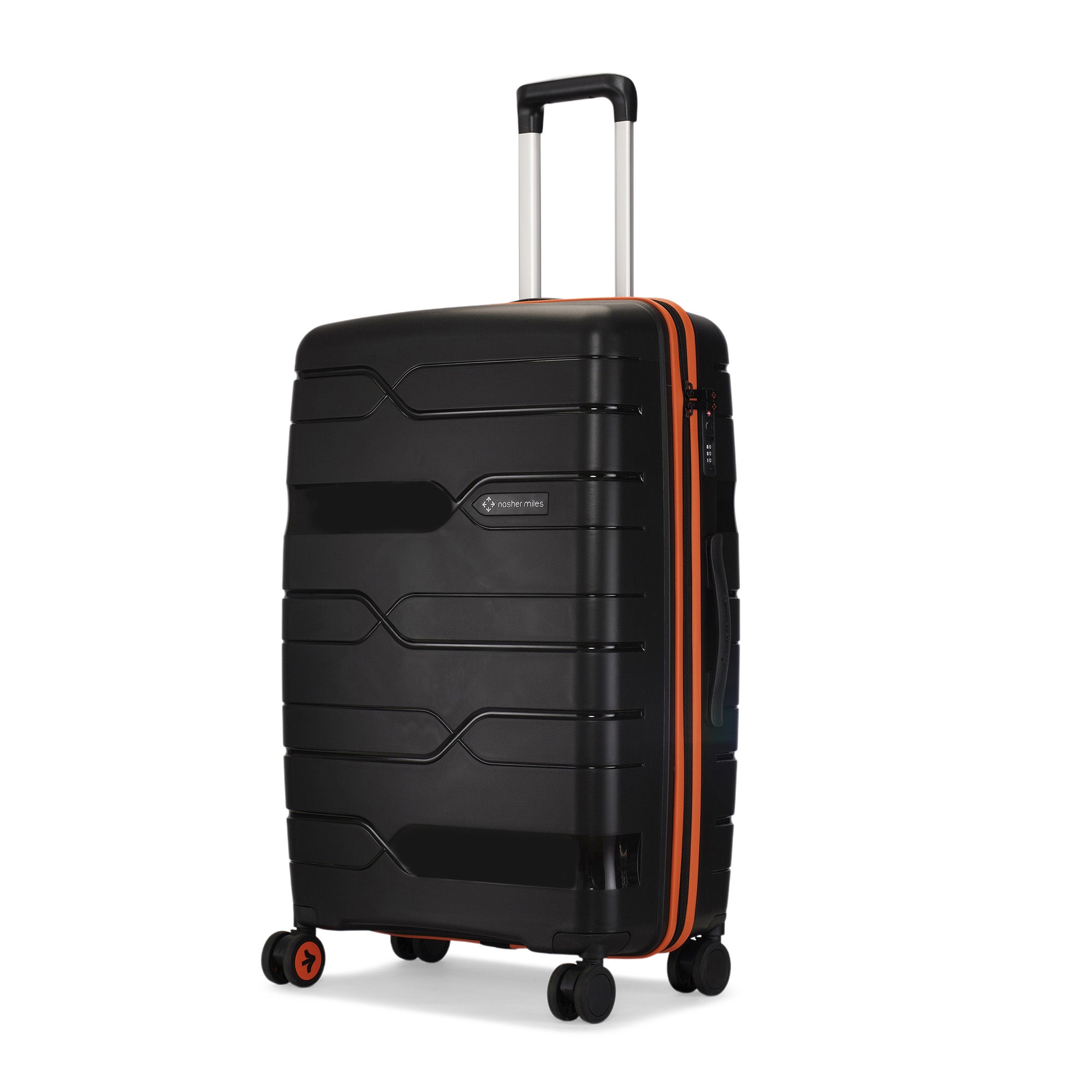Nasher Miles Cannes Hard-sided Polypropylene Check-In Luggage Black Orange 28 inch | 75 cm Large Trolley bag