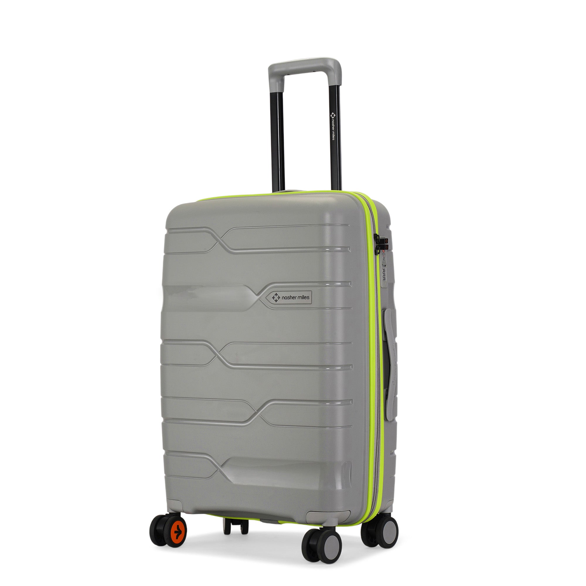 Nasher Miles Cannes Hard-sided Polypropylene Check-In Luggage Grey Neon Green 24 inch | 65 cm Medium Trolley bag