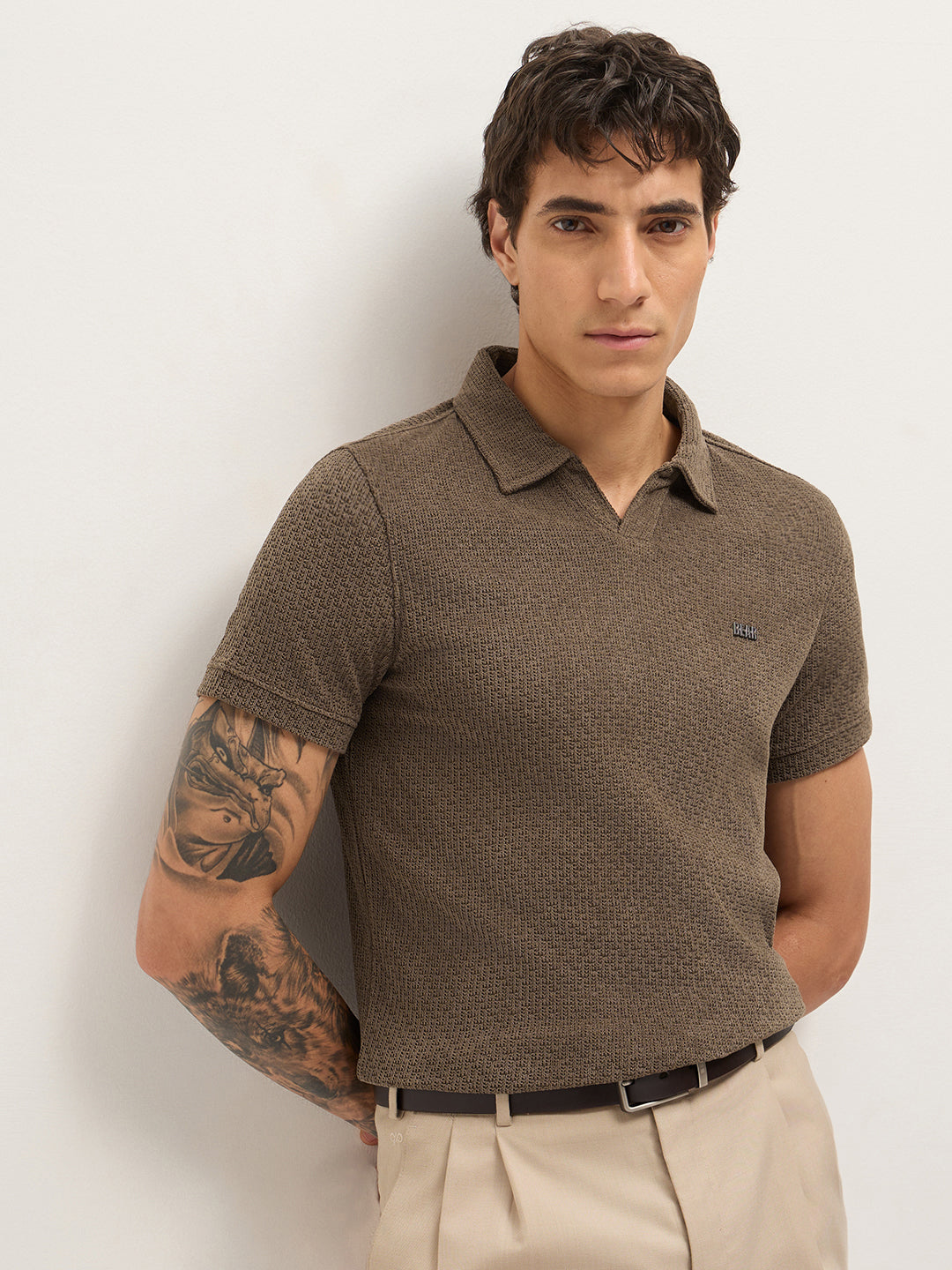 MenÕs Textured Slim Fit Polo T-Shirt POL-MINOR-BR