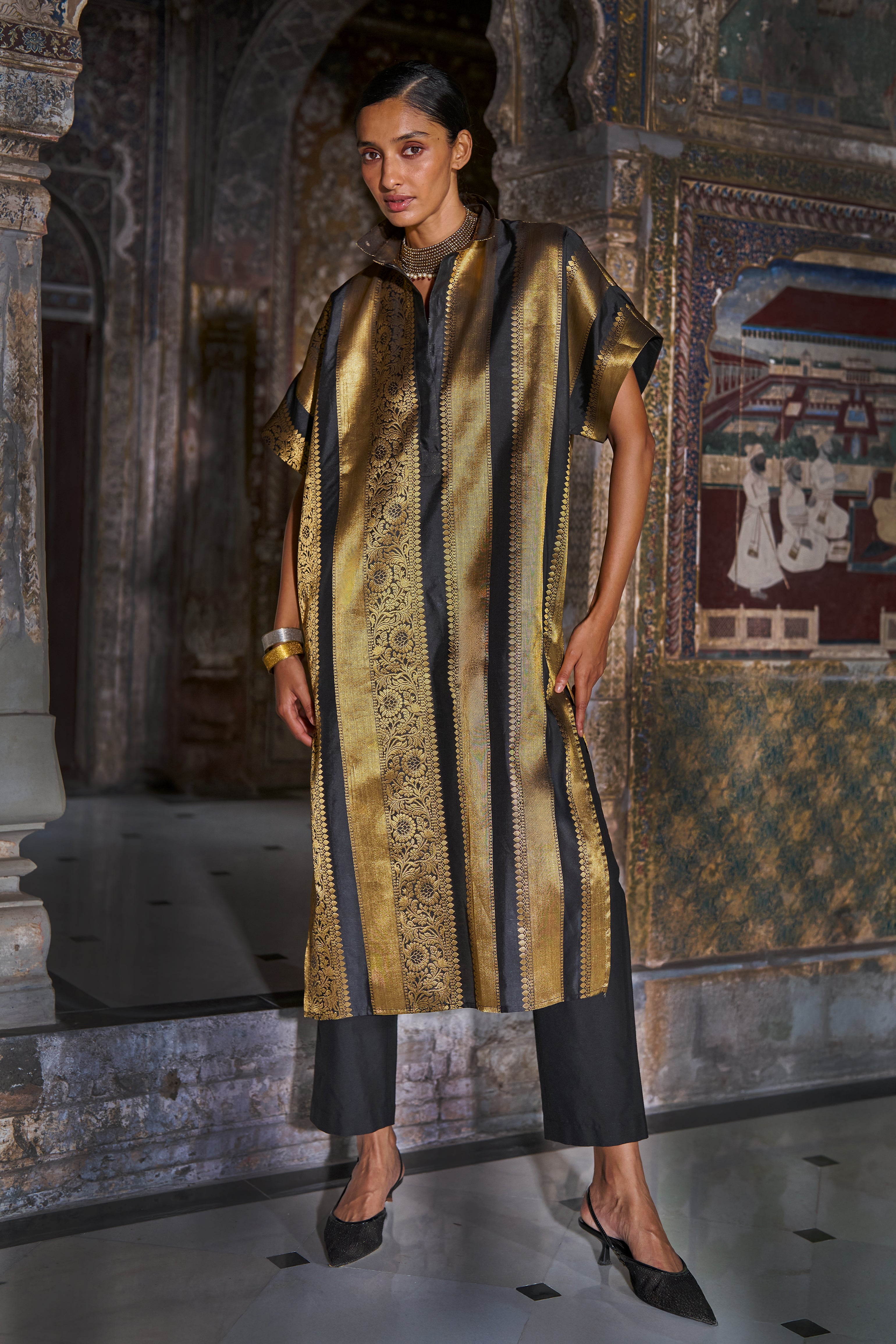 BENARES BROCADE STRIPED LONGLINE SHIRT