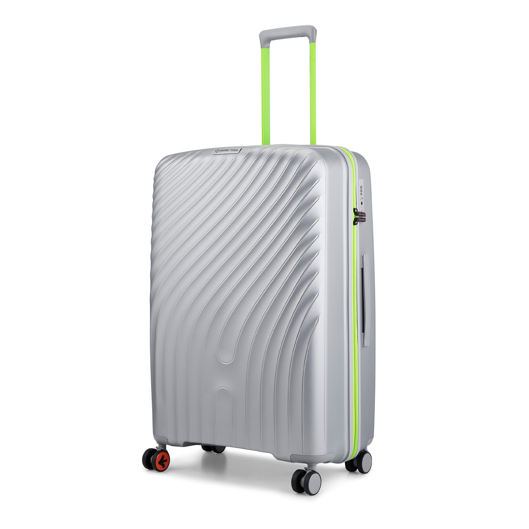 Nasher Miles Capri Hard-Sided Polypropylene Check-in Luggage 28 inch | 75cm | 8 Wheels Large Trolley Bag for Travel | Suitcase (Grey & Green)
