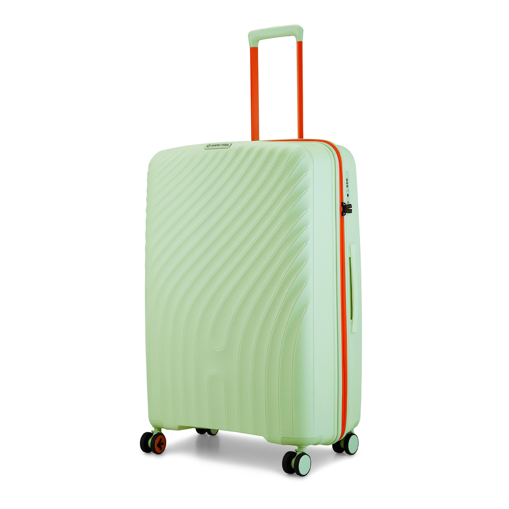 Nasher Miles Capri Hard-Sided Polypropylene Check-in Luggage 28 inch | 75cm | 8 Wheels Large Trolley Bag for Travel | Suitcase (Mint Green & Orange)