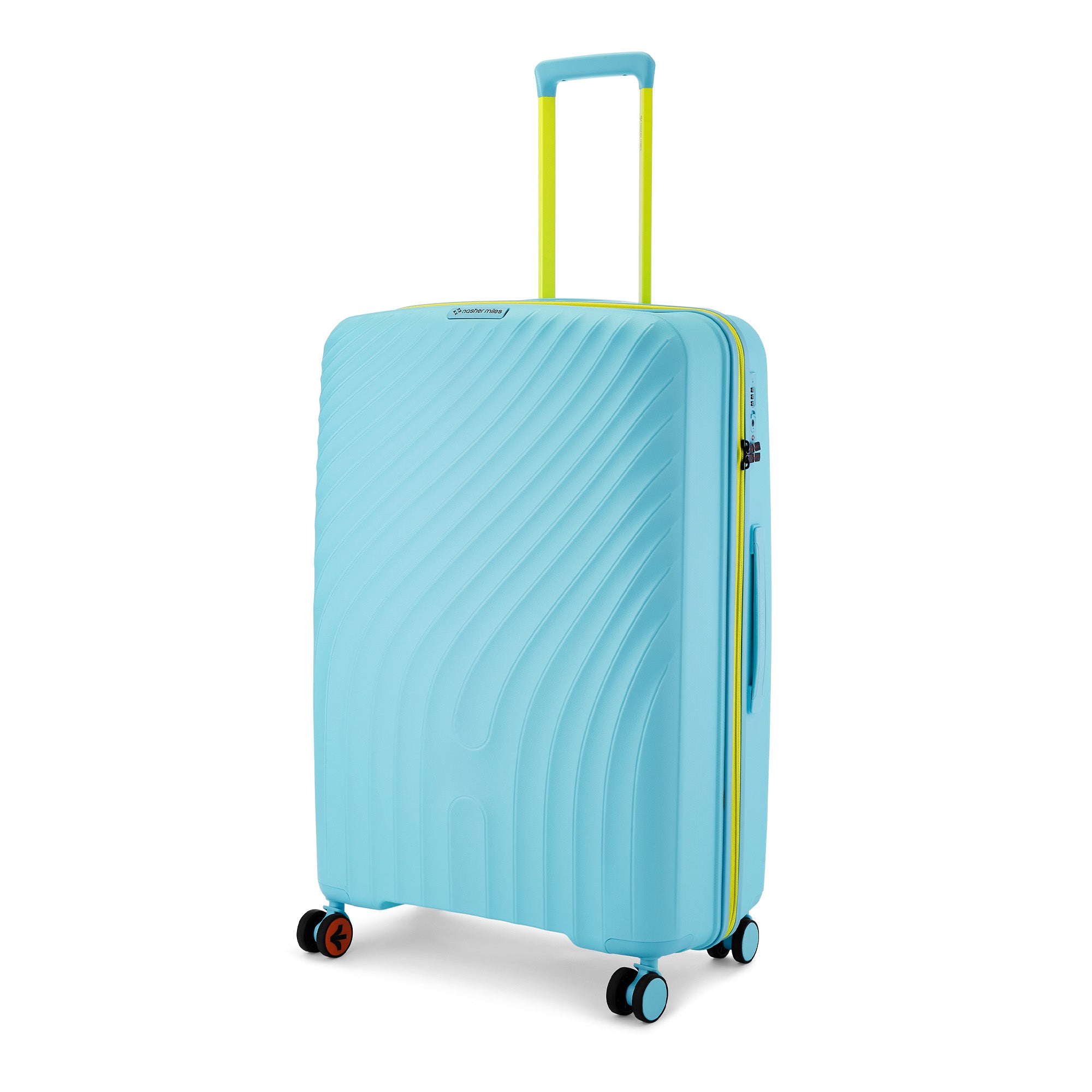 Nasher Miles Capri Hard-Sided Polypropylene Check-in Luggage 28 inch | 75cm | 8 Wheels Large Trolley Bag for Travel | Suitcase (Light Blue & Yellow)