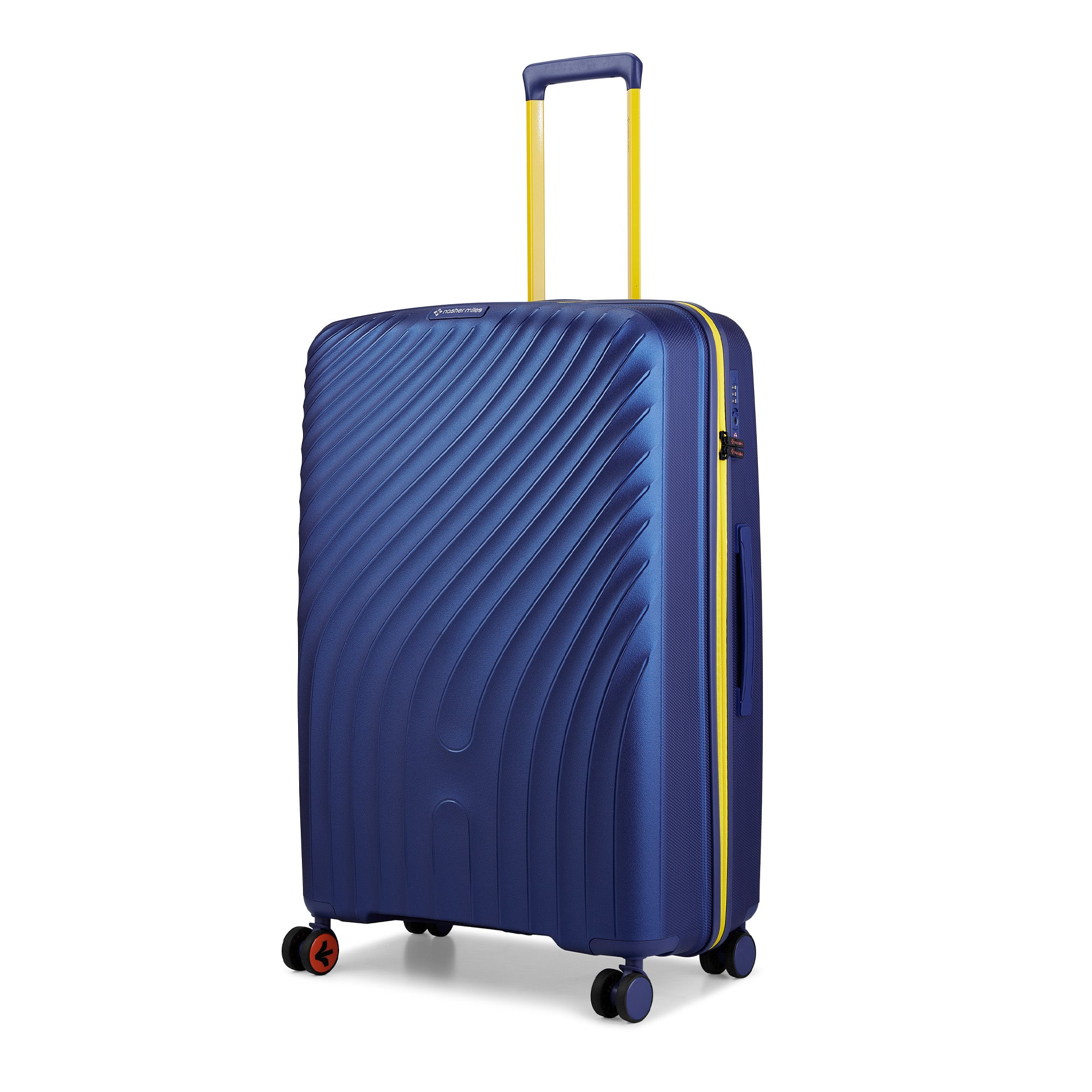 Nasher Miles Capri Hard-Sided Polypropylene Check-in Luggage 28 inch | 75cm | 8 Wheels Large Trolley Bag for Travel | Suitcase (Navy Blue & Yellow)