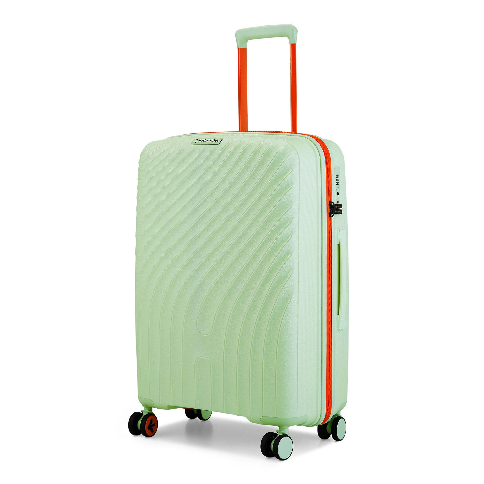 Nasher Miles Capri Hard-Sided Polypropylene Check-in Luggage 24 inch | 65cm | 8 Wheels Medium Trolley Bag for Travel | Suitcase (Mint Green & Orange)