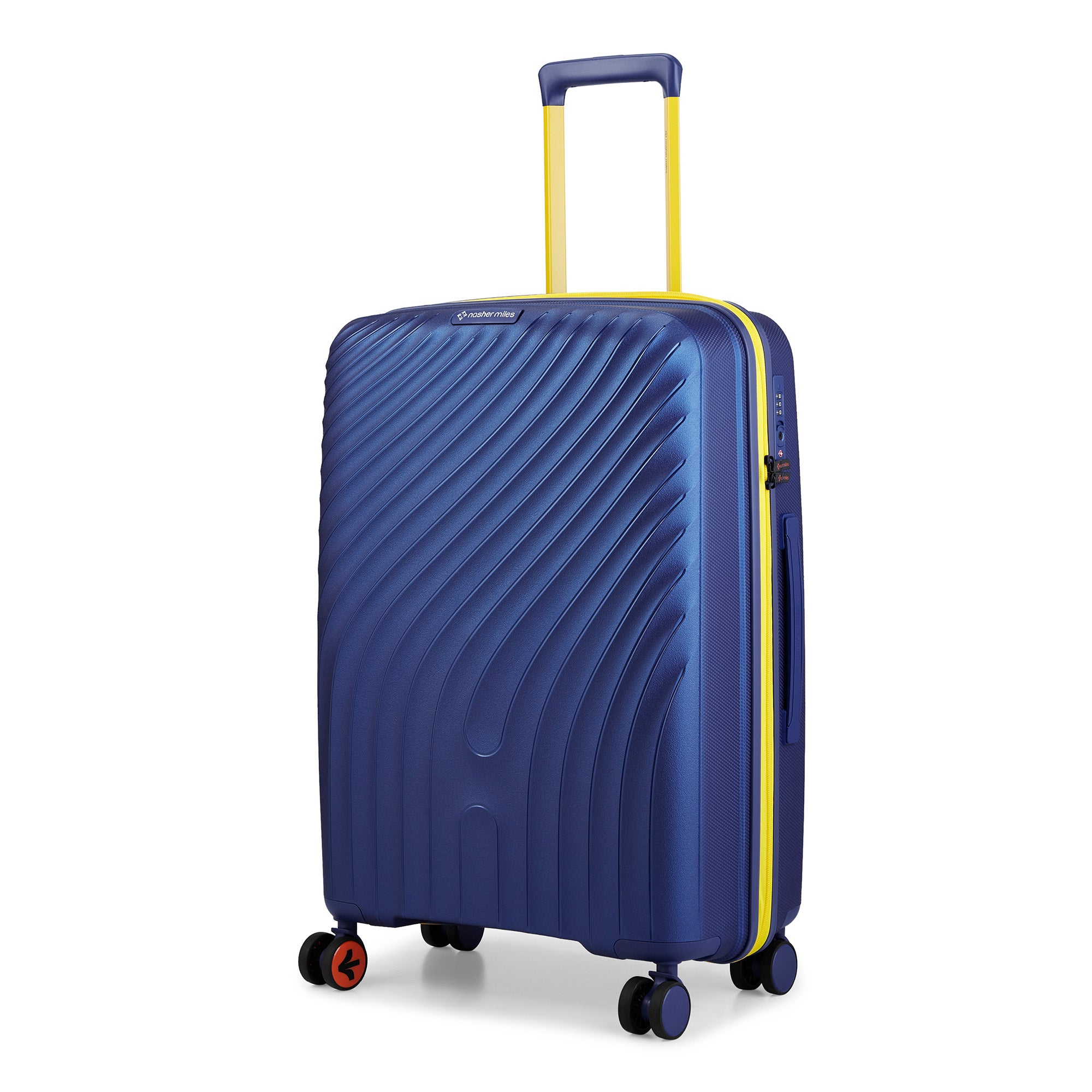 Nasher Miles Capri Hard-Sided Polypropylene Check-in Luggage 24 inch | 65cm | 8 Wheels Medium Trolley Bag for Travel | Suitcase (Navy Blue & Yellow)