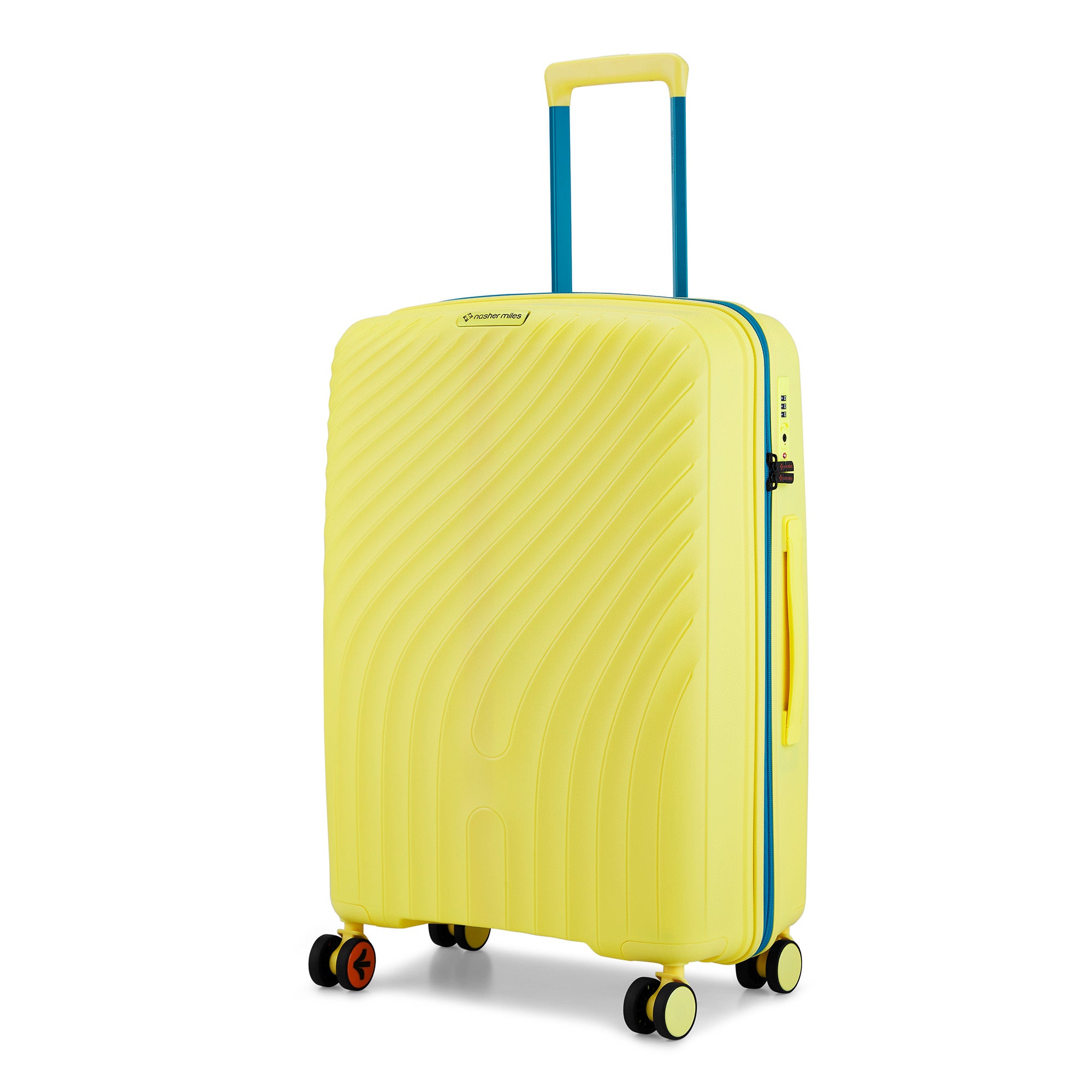 Nasher Miles Capri Hard-Sided Polypropylene Check-in Luggage 24 inch | 65cm | 8 Wheels Medium Trolley Bag for Travel | Suitcase (Yellow & Blue)