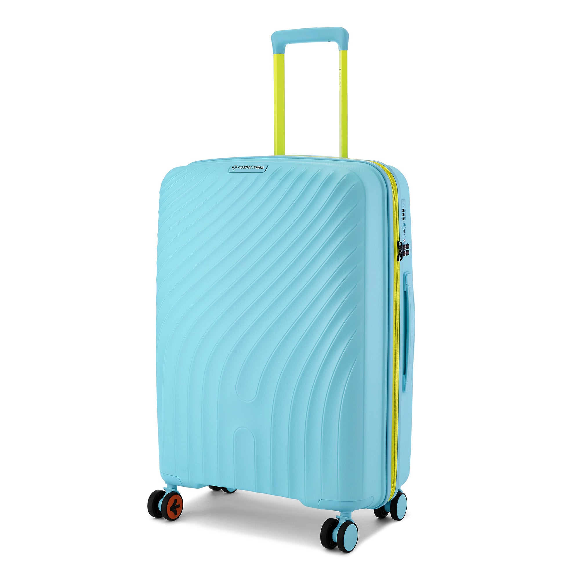 Nasher Miles Capri Hard-Sided Polypropylene Check-in Luggage 24 inch | 65cm | 8 Wheels Medium Trolley Bag for Travel | Suitcase (Light Blue & Yellow)