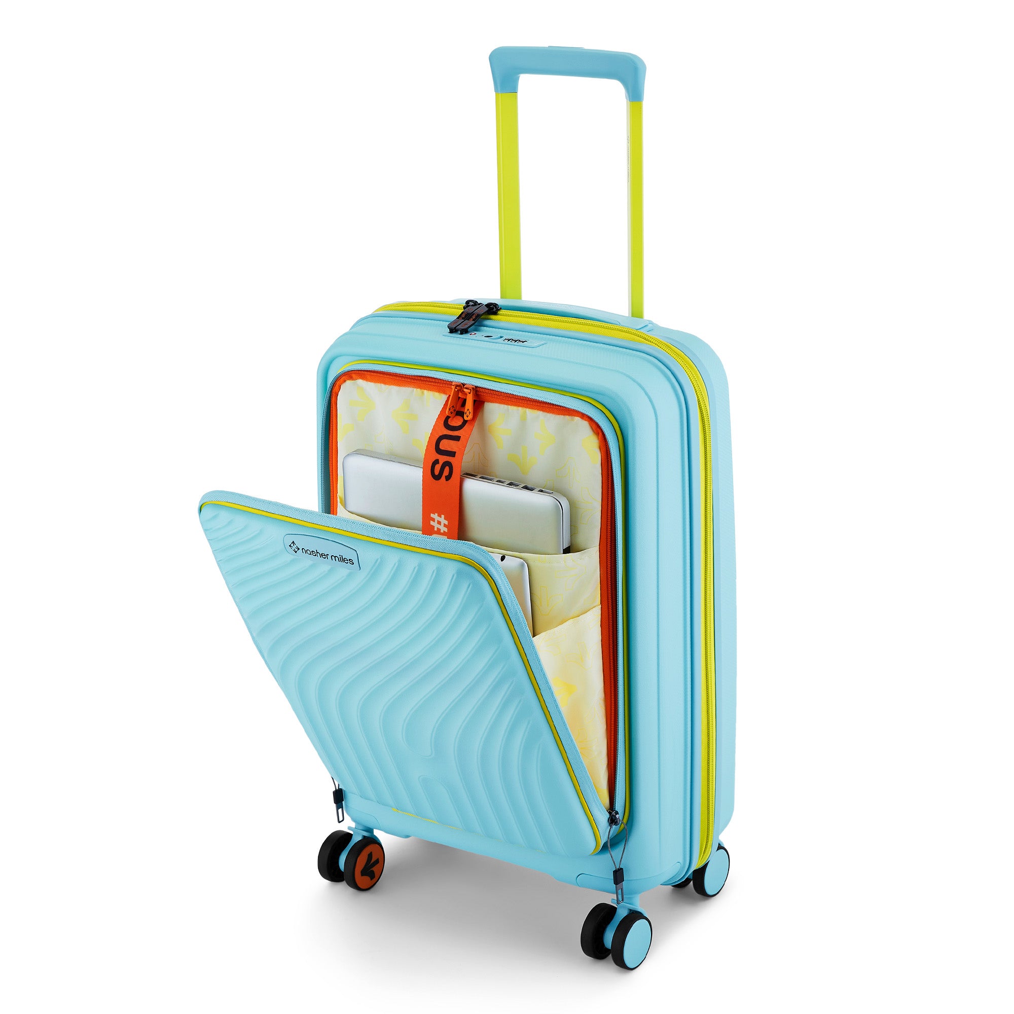 Nasher Miles Capri Hard-Sided Polypropylene Cabin Luggage with Laptop Compartment 20 inch | 55cm | 8 Wheels Small Trolley Bag for Travel | Suitcase (Light Blue & Yellow)