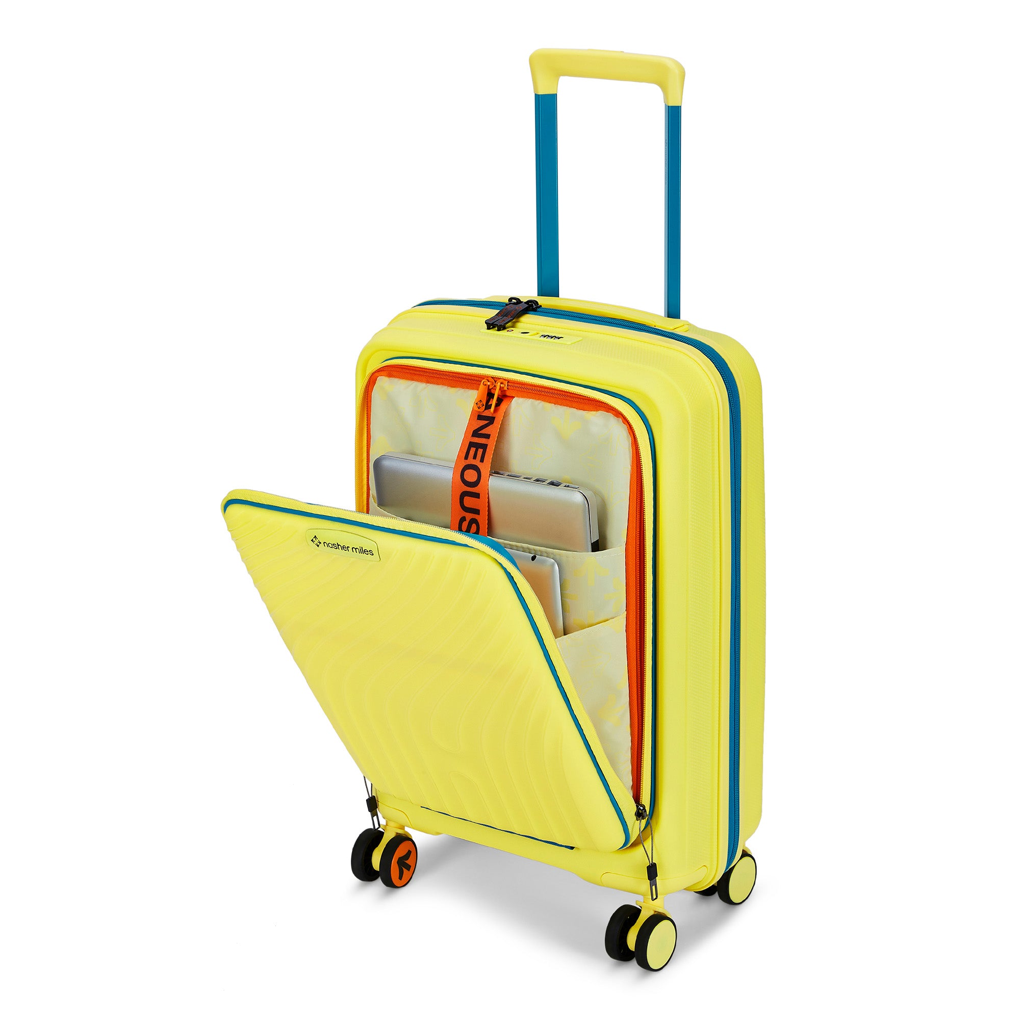 Nasher Miles Capri Hard-Sided Polypropylene Cabin Luggage with Laptop Compartment 20 inch | 55cm | 8 Wheels Small Trolley Bag for Travel | Suitcase (Yellow & Blue)