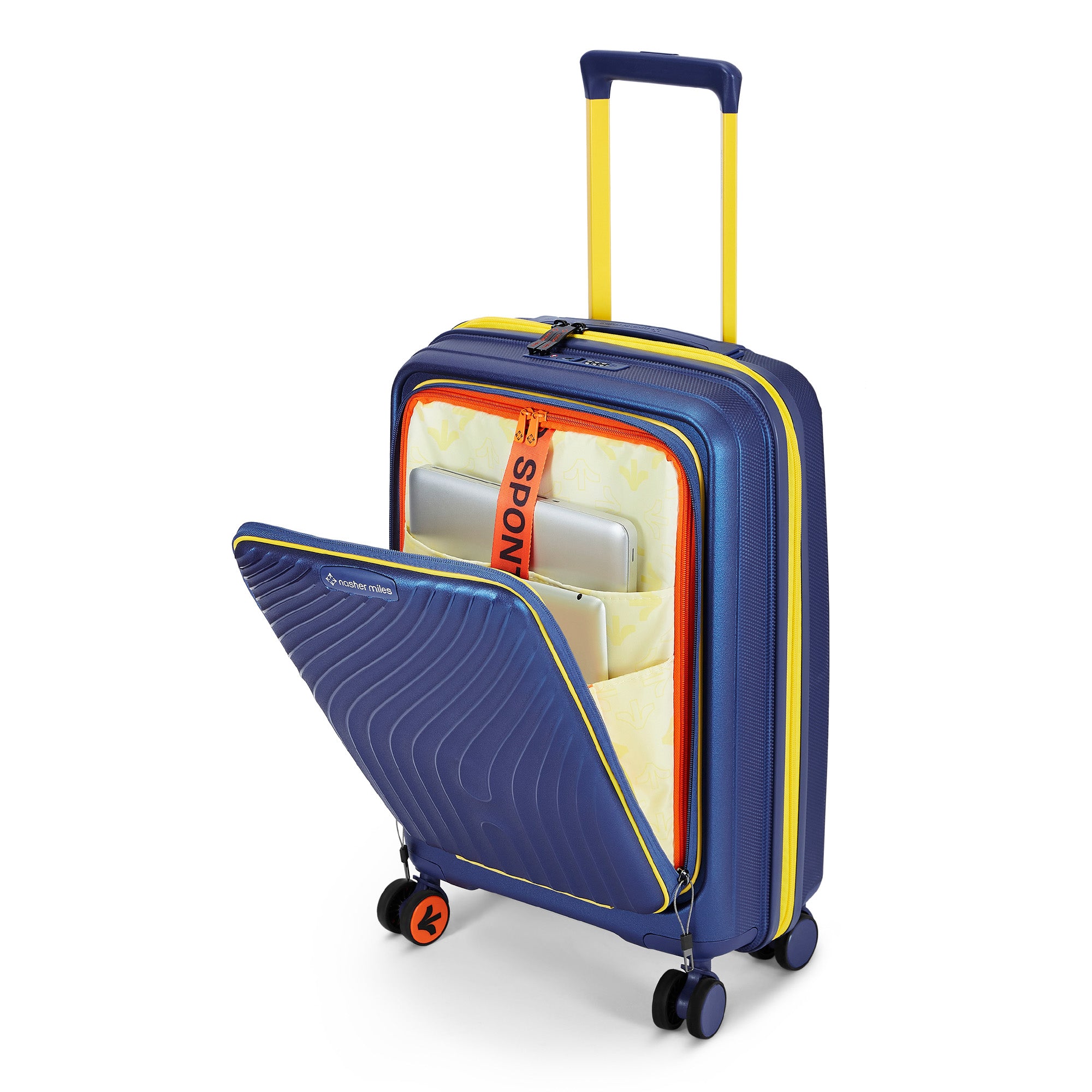 Nasher Miles Capri Hard-Sided Polypropylene Cabin Luggage with Laptop Compartment 20 inch | 55cm | 8 Wheels Small Trolley Bag for Travel | Suitcase (Navy Blue & Yellow)