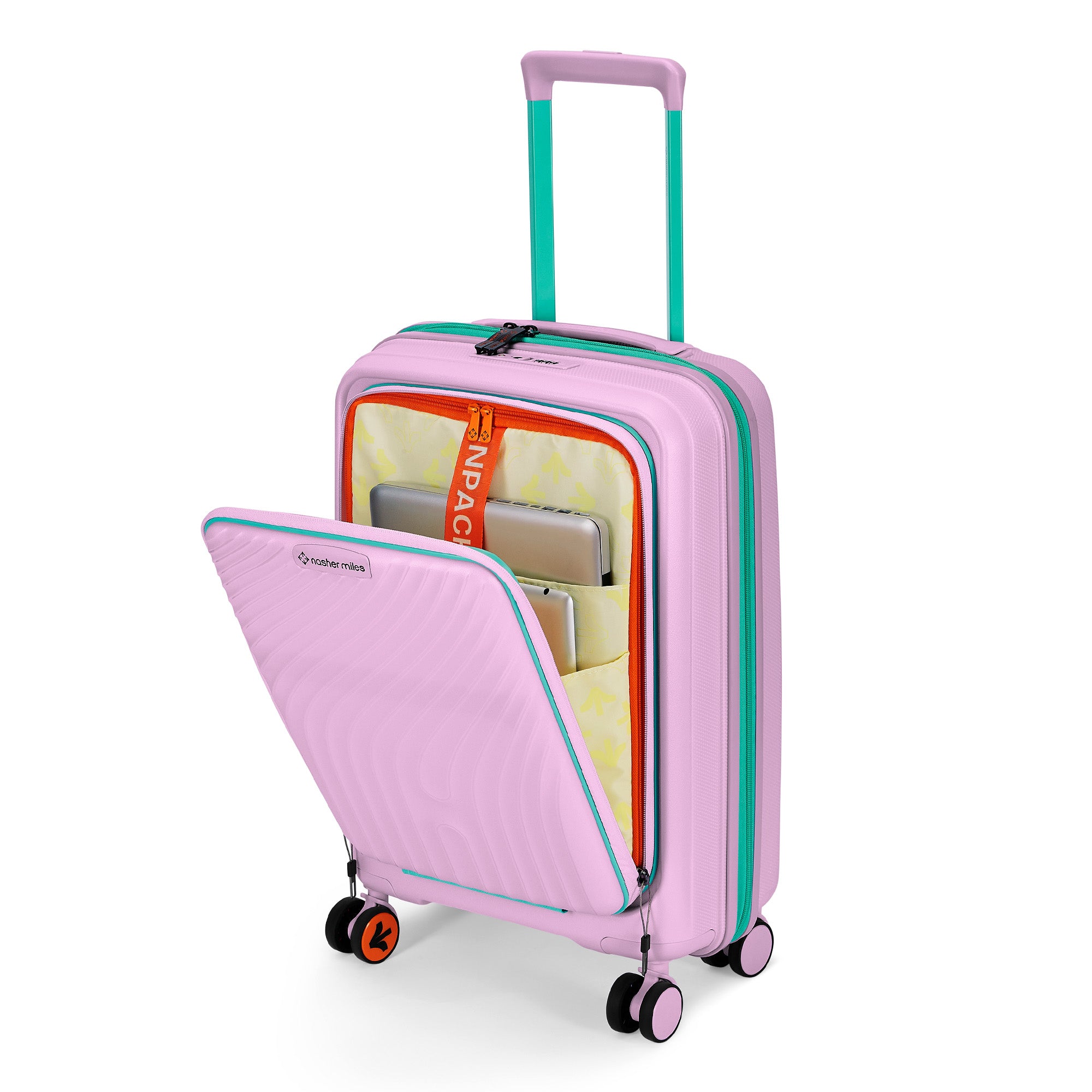 Nasher Miles Capri Hard-Sided Polypropylene Cabin Luggage with Laptop Compartment 20 inch | 55cm | 8 Wheels Small Trolley Bag for Travel | Suitcase (Purple & Teal)