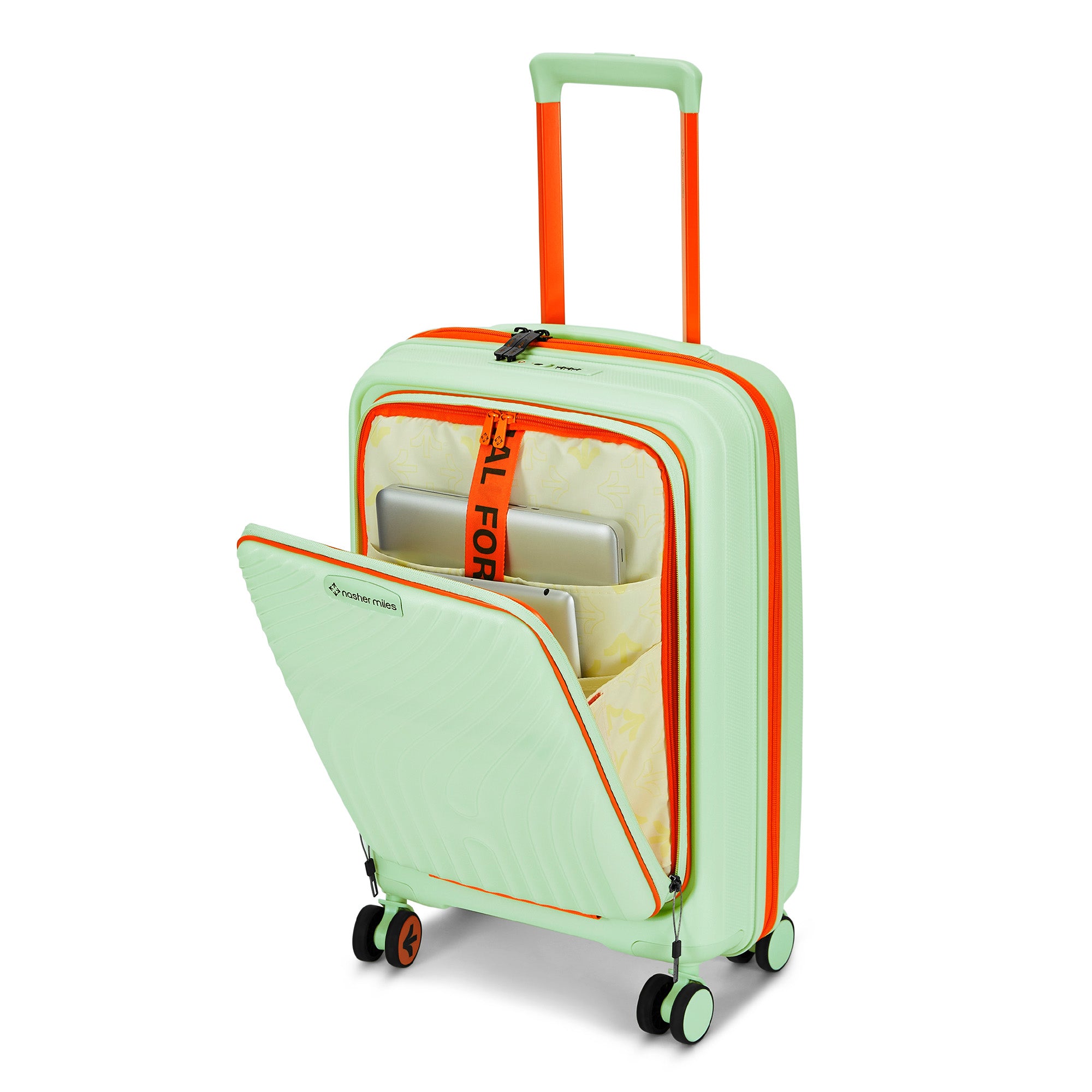 Nasher Miles Capri Hard-Sided Polypropylene Cabin Luggage with Laptop Compartment 20 inch | 55cm | 8 Wheels Small Trolley Bag for Travel | Suitcase (Mint Green & Orange)