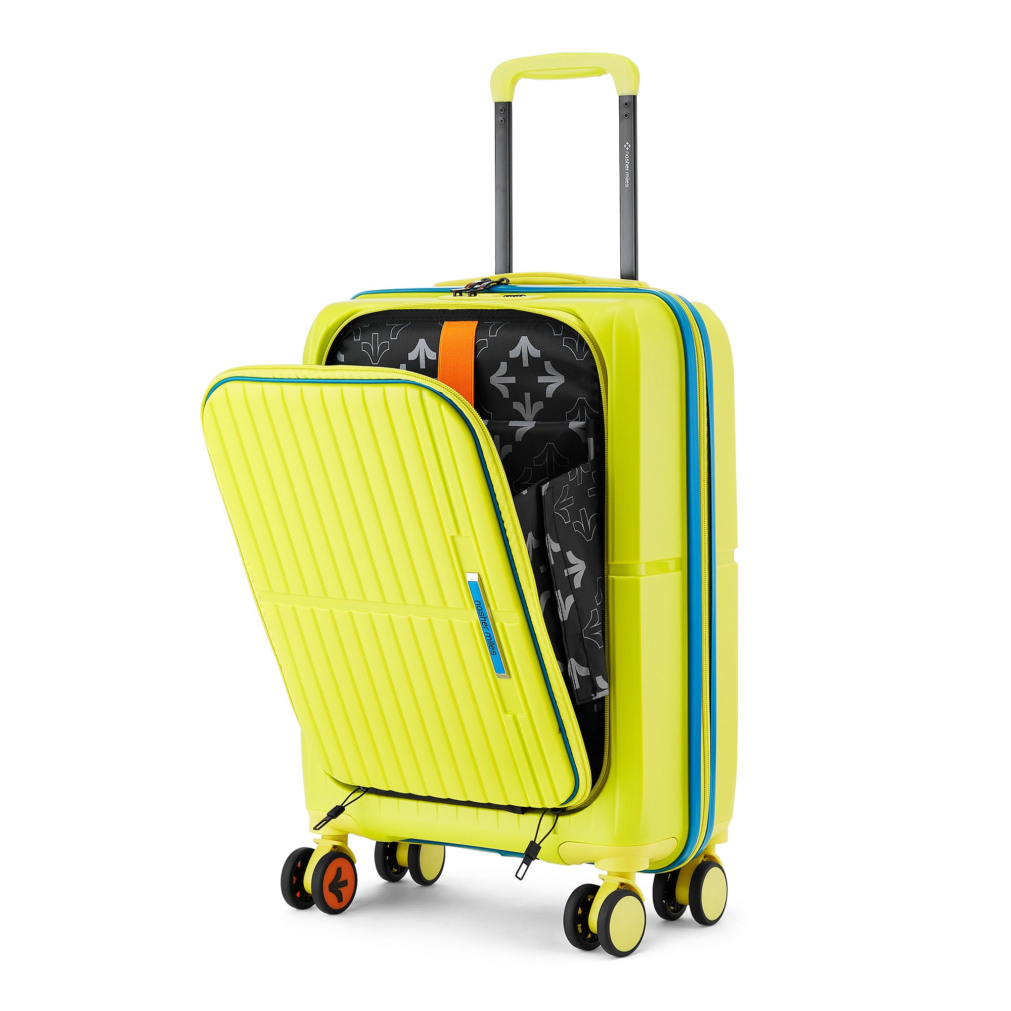 Nasher Miles Capri Hard-Sided Polypropylene Cabin Luggage with Laptop Compartment 20 inch | 55cm | 8 Wheels Small Trolley Bag for Travel | Suitcase (Navy Blue & Yellow)