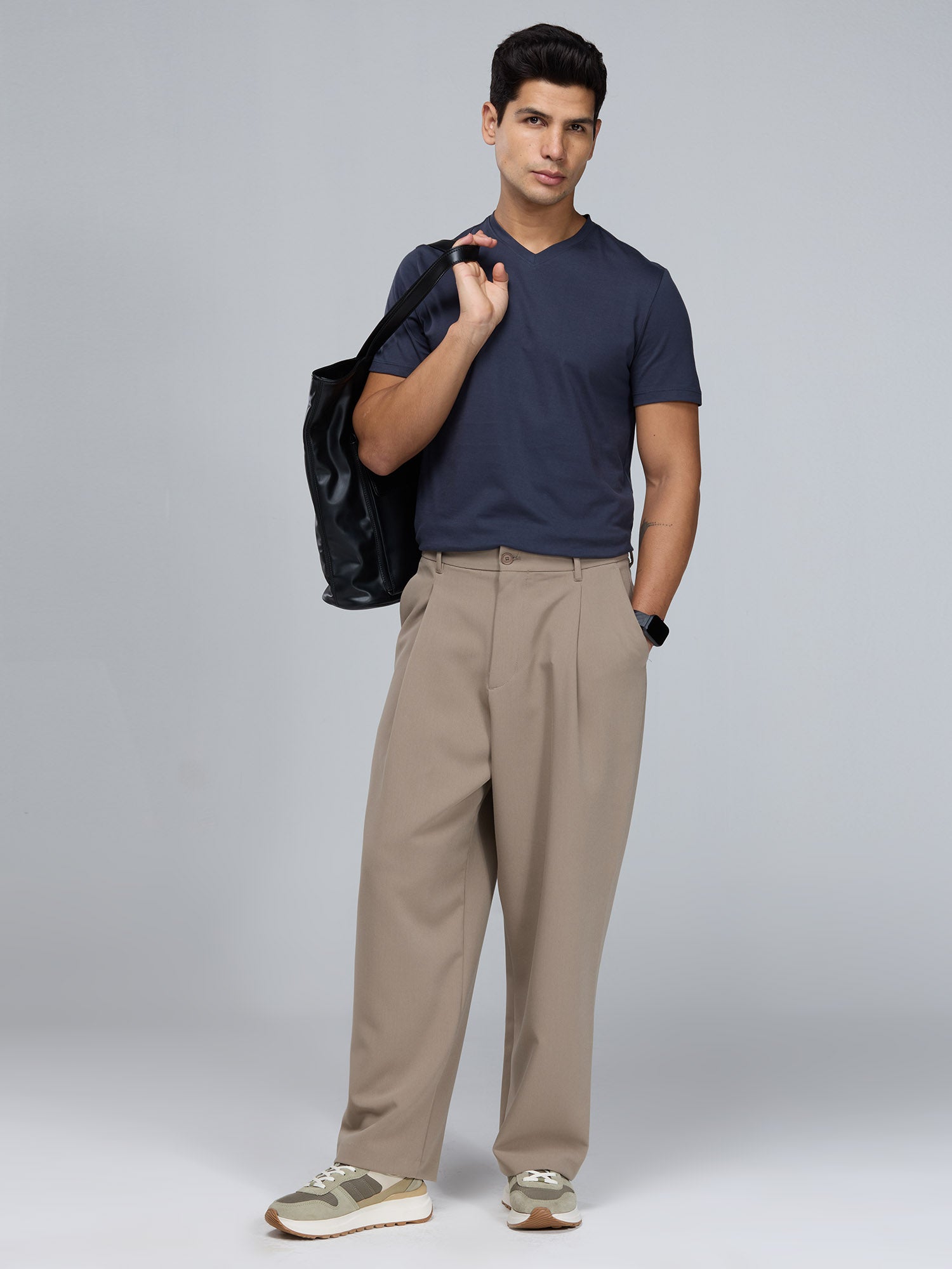 Beige Supima V Neck T-shirt - Regular Fit