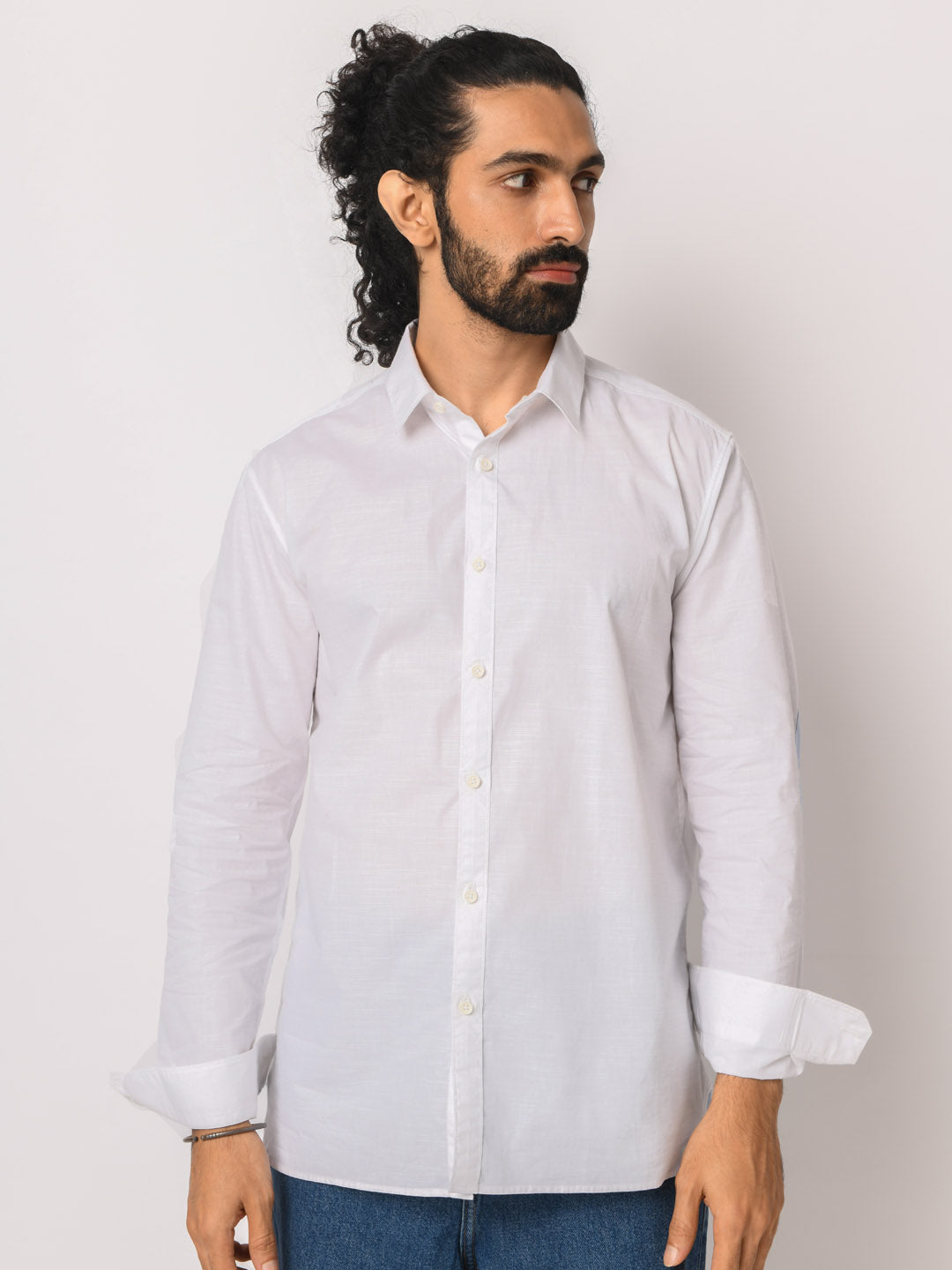 Loop-Style Placket White Shirt - Vistrit