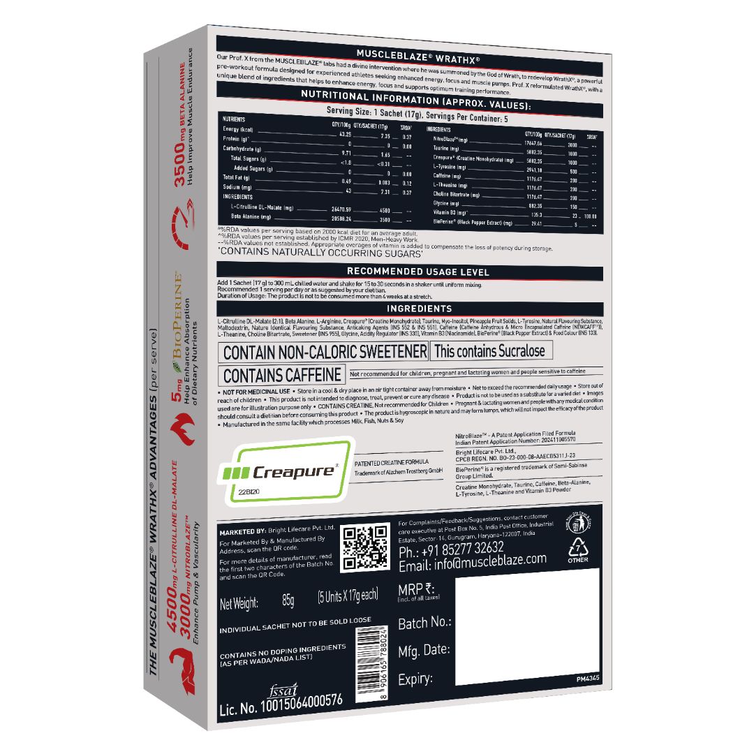 MuscleBlaze Pre Workout WrathX with Creapure®, Nitroblaze & BioPerine (Cola Frost, 85g, Pack of 5)