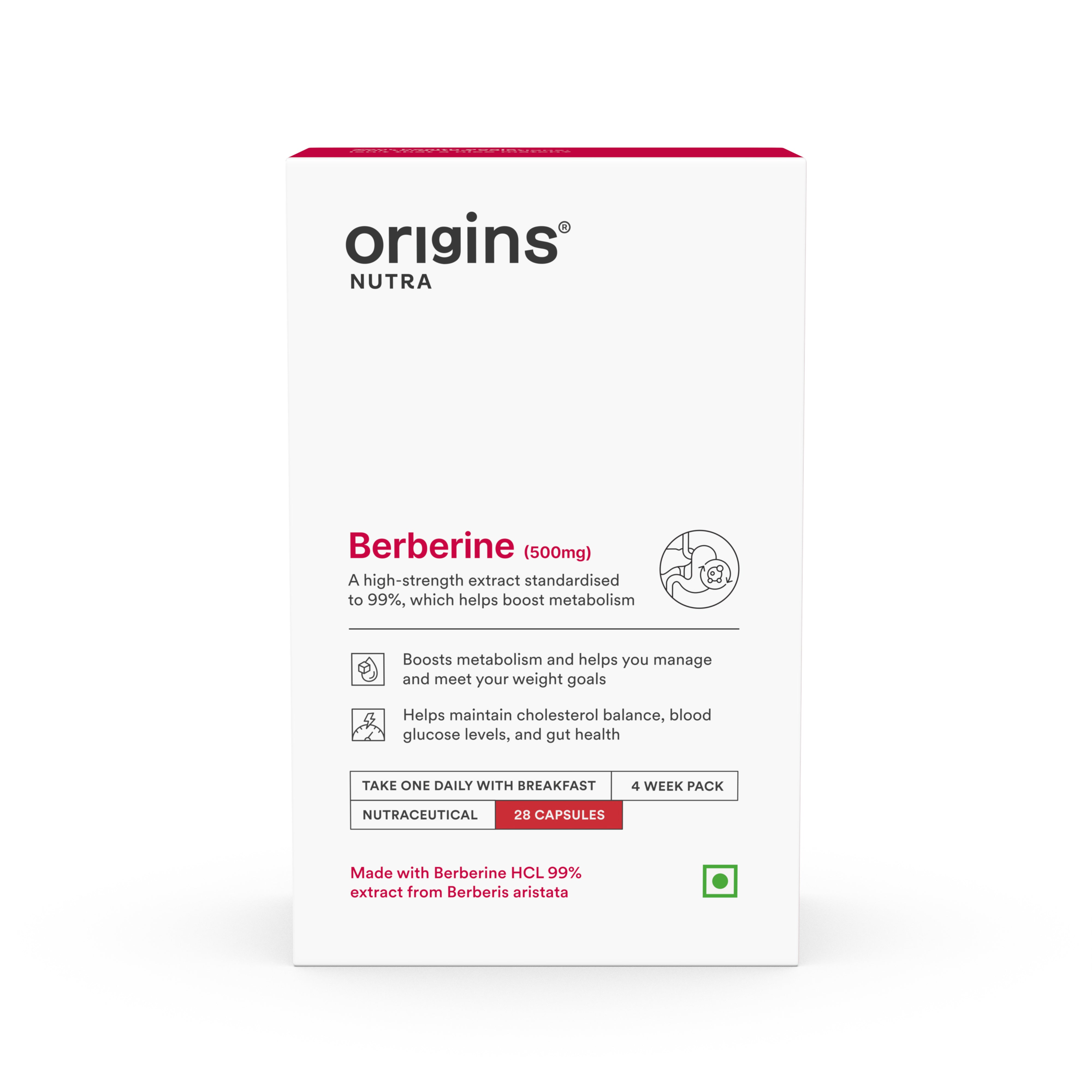 Origins Nutra Berberine |Boost Metabolism & Energy Levels, Help Manage Blood Sugar |Berberine |GMP Certified | For Men & Women | 28 Veg Capsules.