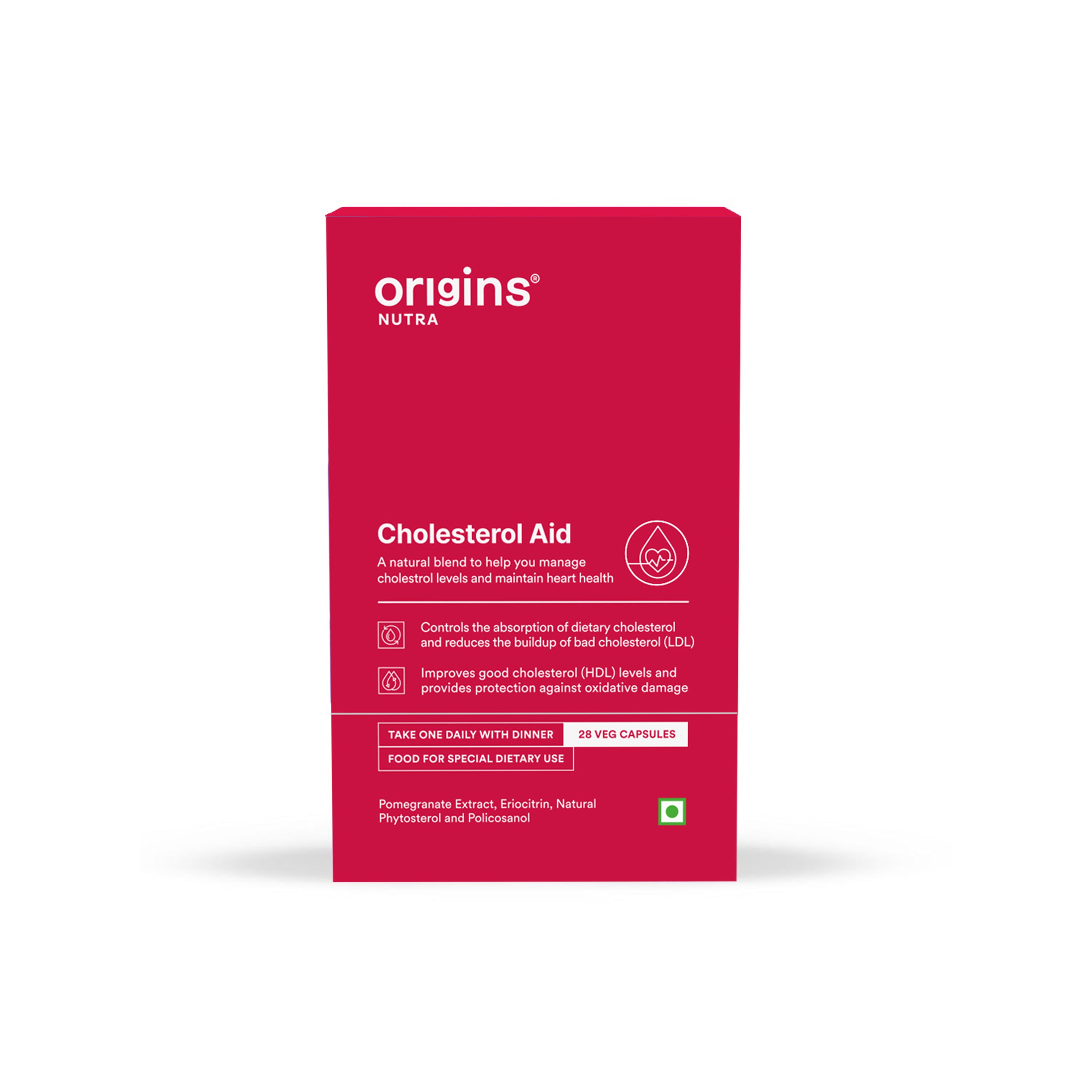 Origins Nutra Cholesterol Aid |Cholesterol Balance, Helps Reduce LDL, Boosts HDL |Plantsterols, Pomegranate Extract, Eriocitrin, Policosonal | Vegan-Friendly|For Men & Women|28 Veg Capsules.