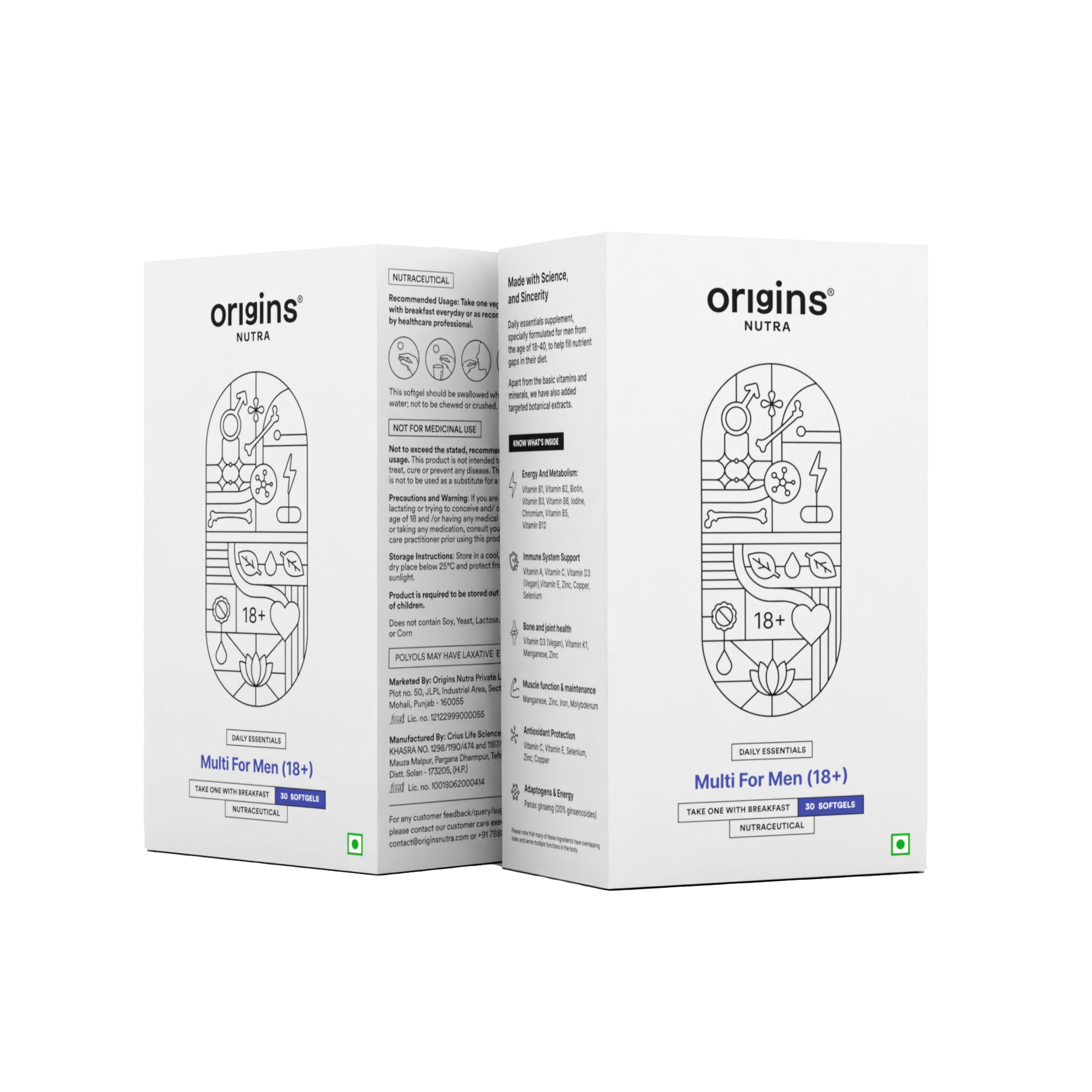 Origins Nutra Multivitamin for Men (18+) Boosts Energy and Metabolism, Immune Support, Cognitive Health, Muscle Function, Strengthens Bone and Joint Health GMP Certified Non-GMO 30 Softgels.