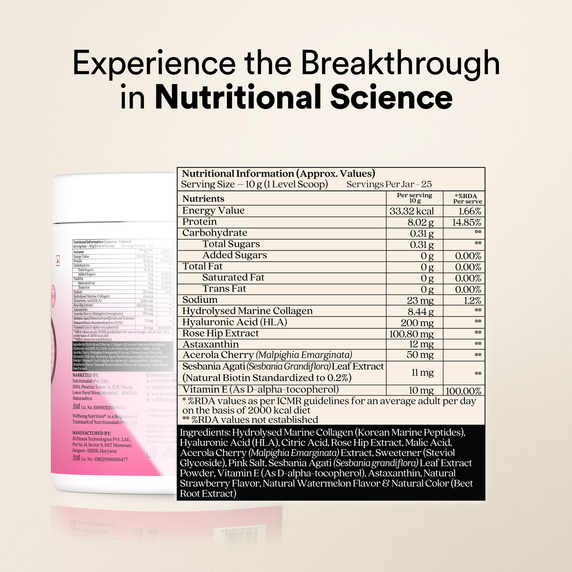 | Additional Actives | Hyaluronic Acid, Biotin, Astaxanthin, Vitamins C & E |