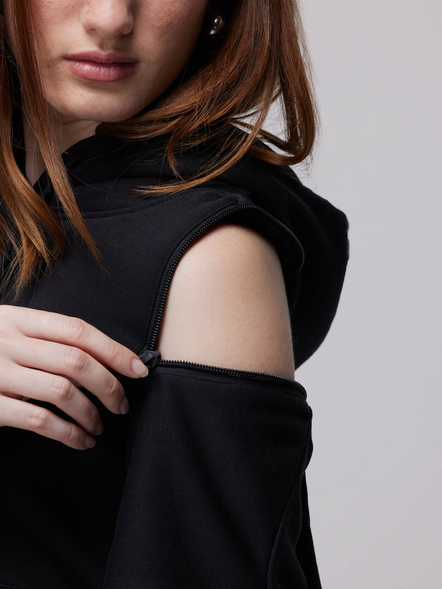 Crafted with buttery-soft fabric, this hoodie is your ultimate relaxation companion. It features a transformative off-shoulder zipper along with a functional kangaroo pouch. The hood has stylish draw cords that combines comfort and function seamlessly. The bishop sleeves and sweat-wicking material make it perfect for lounging in luxury.