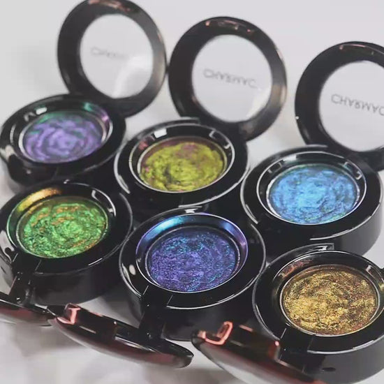 Multichrome eye shadow with creamy texture and buildable, long-wearing color