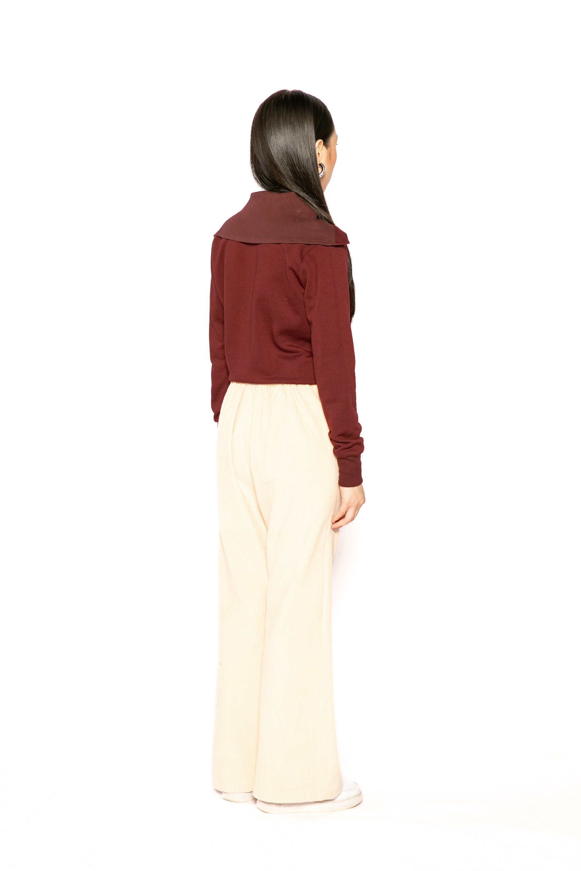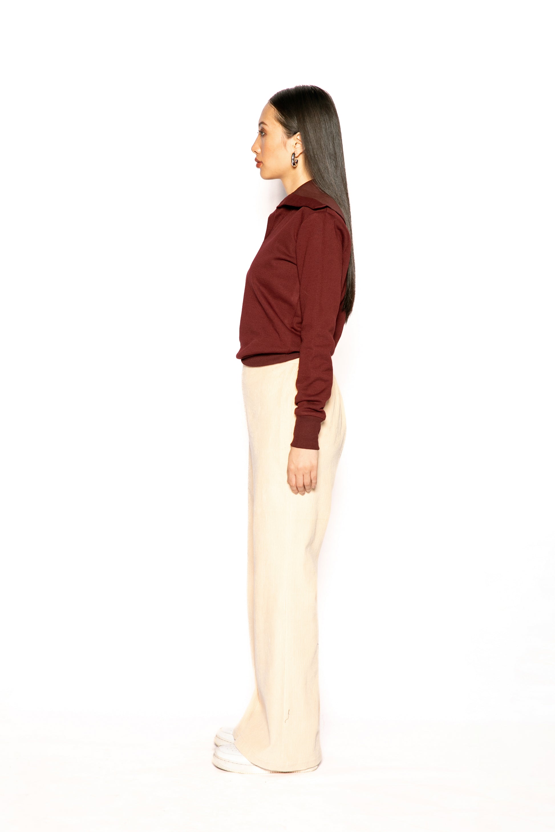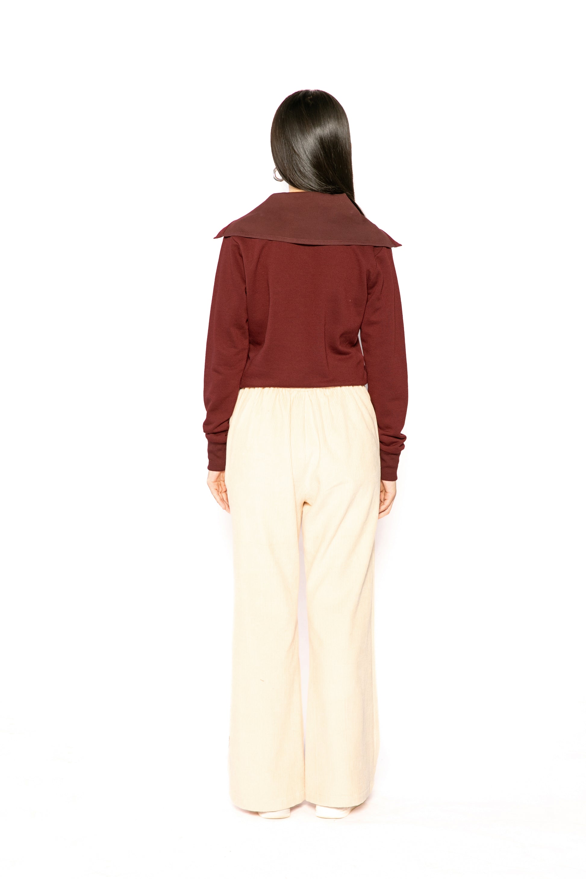 A long-sleeved top featuring a sailor collar and a V-neck opening. The design has a regular fit and a slip-on closure. It includes a rib finish at the collar, cuffs, and hem, which provides a snatched, fitted look.