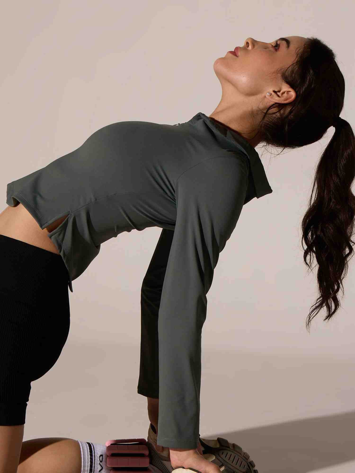 Our Zip-it Top is the perfect layer for your workout routine! It's soft, stretchy, and moisture-wicking, keeping you comfortable and dry. The snug fit and curved hem offer a flattering look, while the half-zip style lets you adjust to the temperature. Whether you're hitting the gym or going for a run, this jacket has you covered.