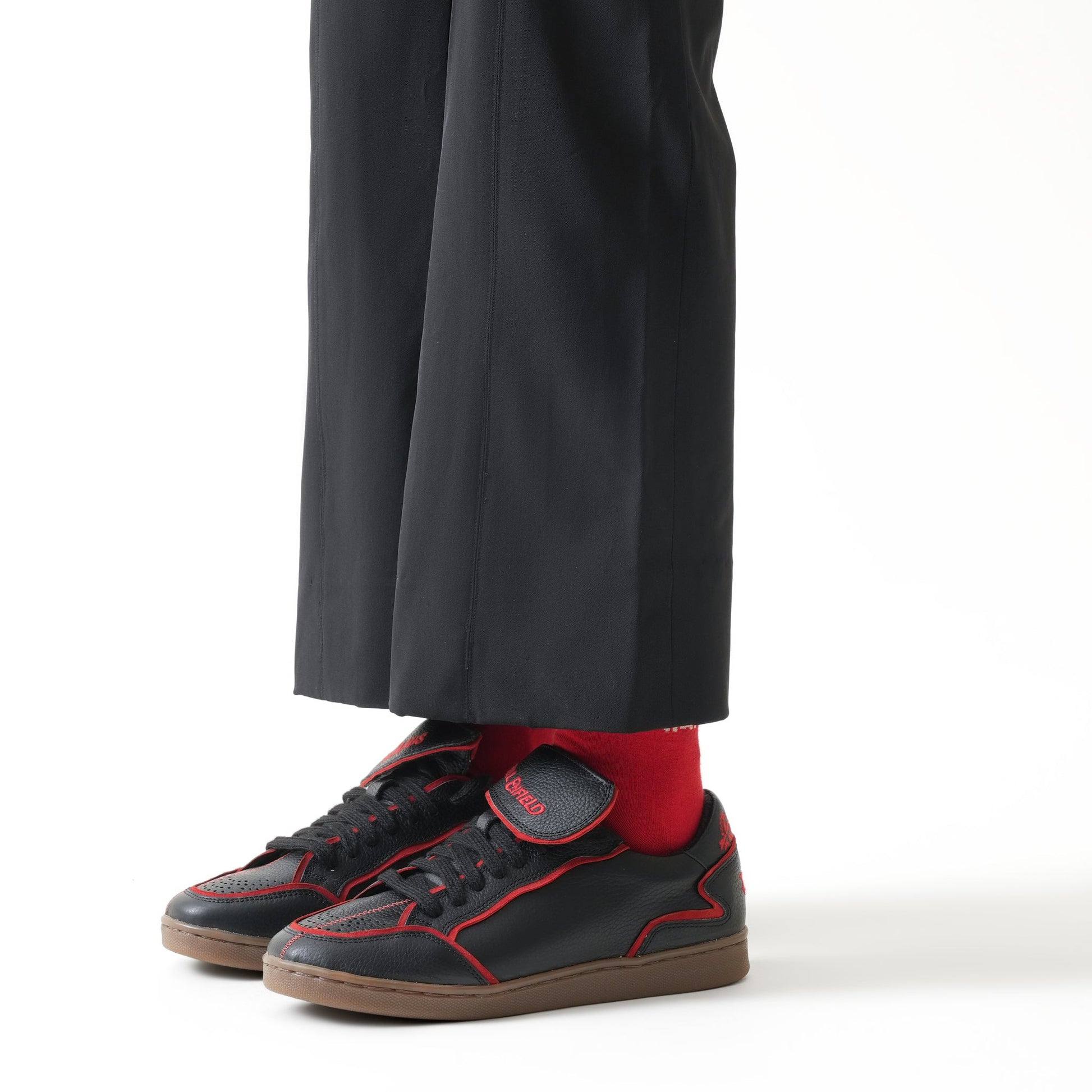 Introducing the Kaalshire UK — a heavy-duty sneaker built for riders, urban explorers, and moto-culture enthusiasts. Inspired by Royal Enfield’s signature DNA, this collaboration mirrors the blackout Hunter 350 London Edition, featuring premium all-black leather with bold red accents for a striking and purposeful aesthetic.