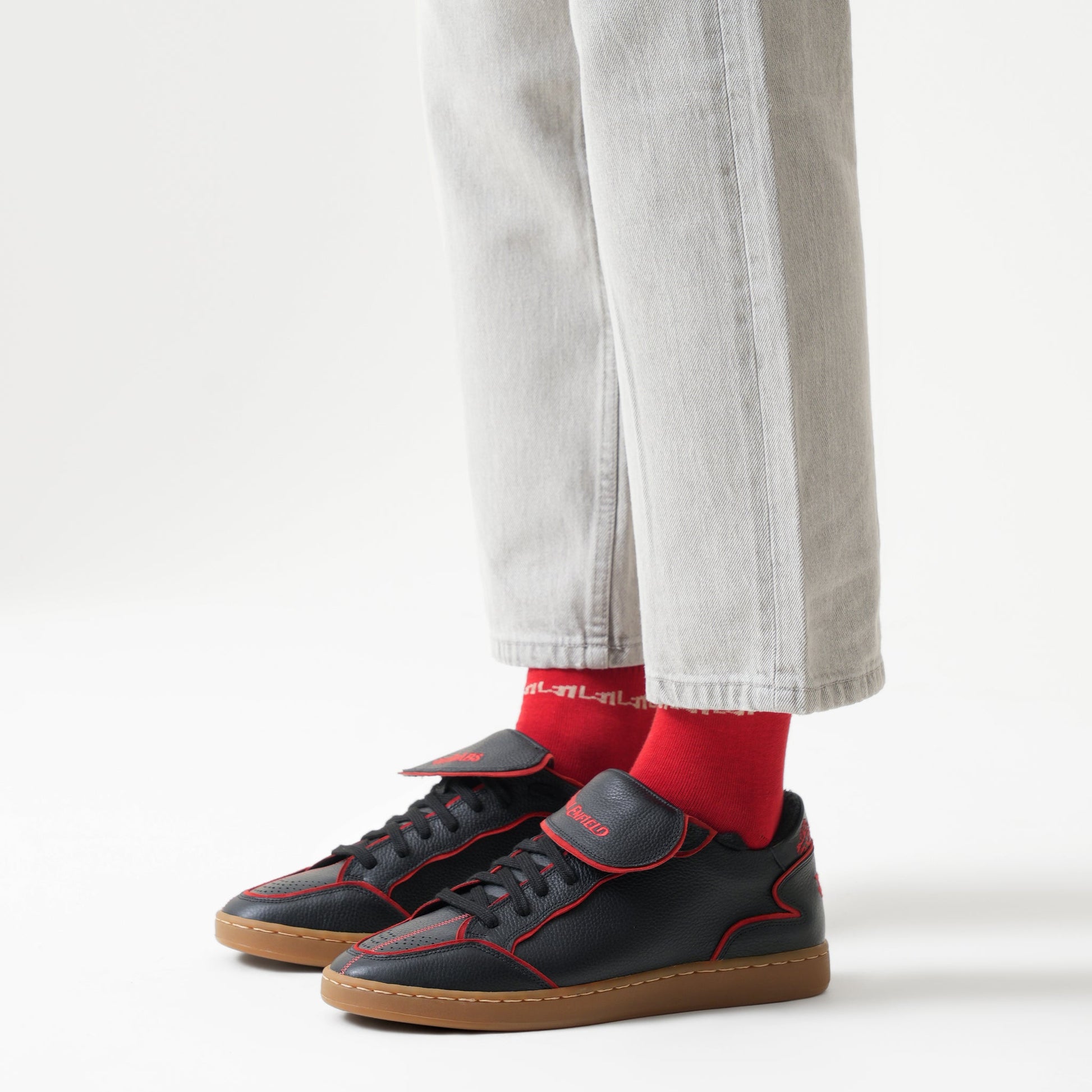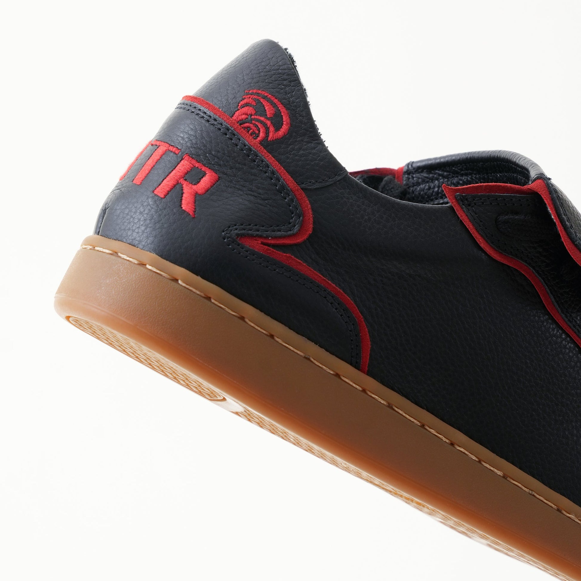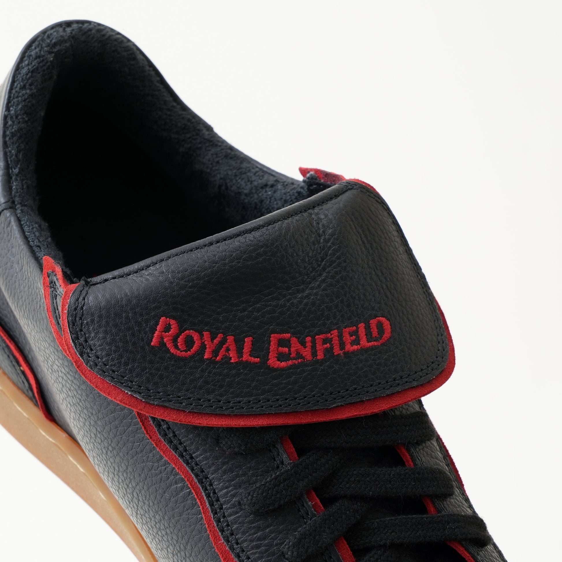 Introducing the Kaalshire UK — a heavy-duty sneaker built for riders, urban explorers, and moto-culture enthusiasts. Inspired by Royal Enfield’s signature DNA, this collaboration mirrors the blackout Hunter 350 London Edition, featuring premium all-black leather with bold red accents for a striking and purposeful aesthetic.