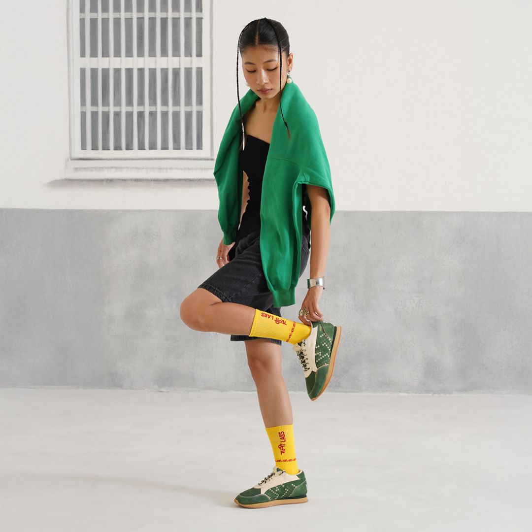 Intricate Phulkari-inspired floral motifs paired with gold “1928” embroidery celebrate Indian artistry and sporting excellence. Finished with comfortable insoles and subtle GL branding at the back, each pair is meticulously hand-stitched by seasoned artisans.