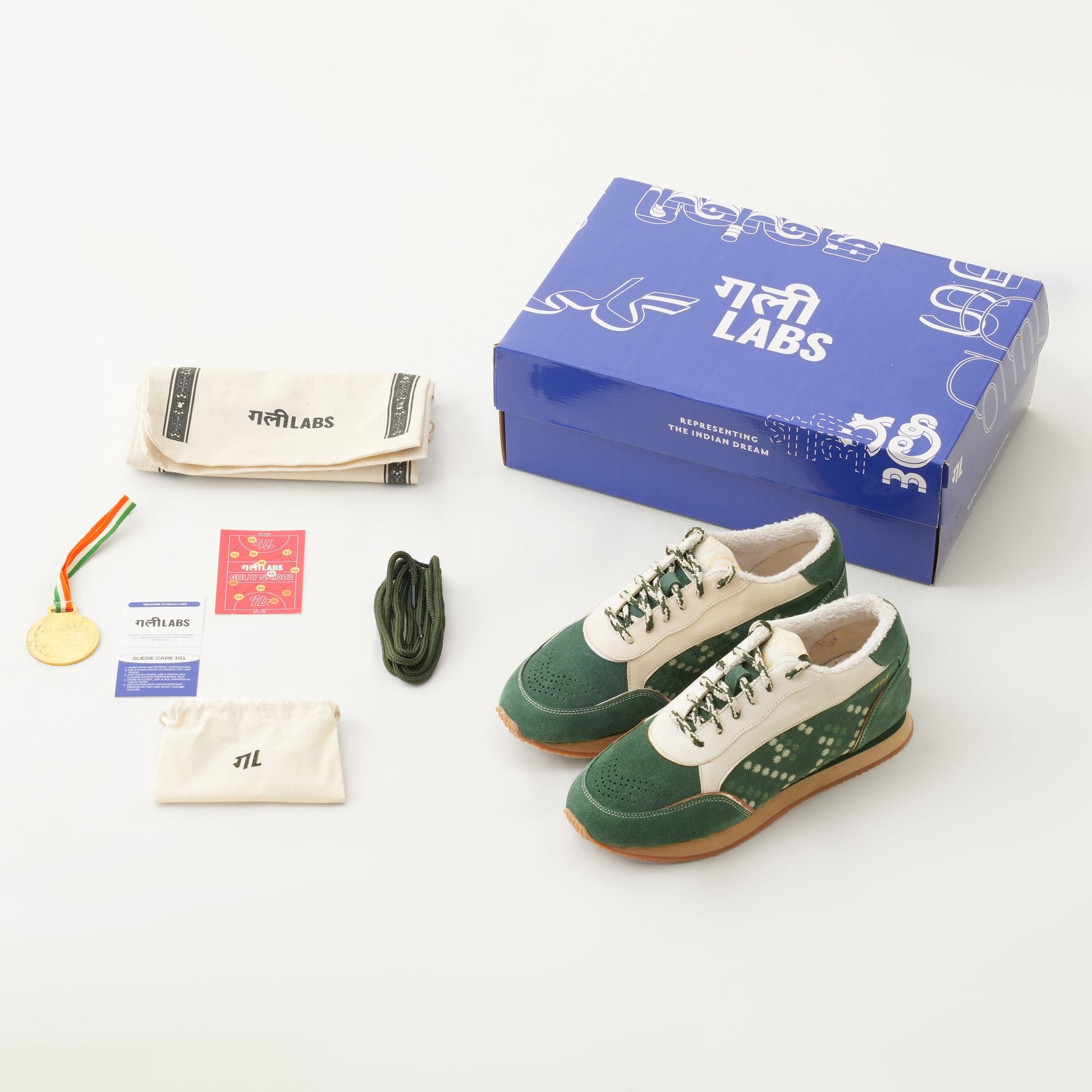 A tribute to India’s first year of Olympic hockey domination, this pair draws inspiration from the iconic olive Olympic turf. Rooted in legacy and movement, it blends sporting heritage with contemporary craftsmanship.