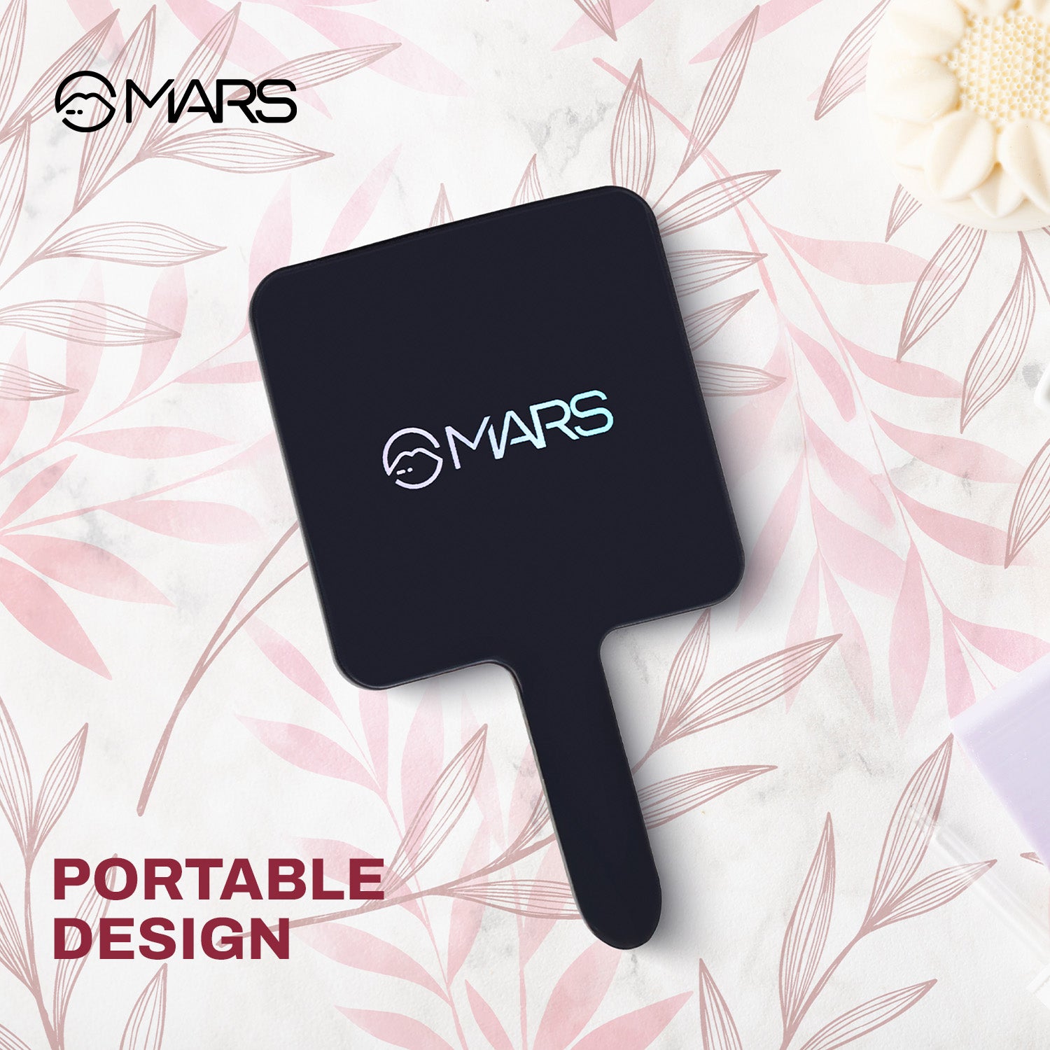 MARS Makeup Mirror with Handle | HD Clear Reflection | Lightweight & Portable Design | Ideal for Precise Makeup Application and Travel Use | BLACK