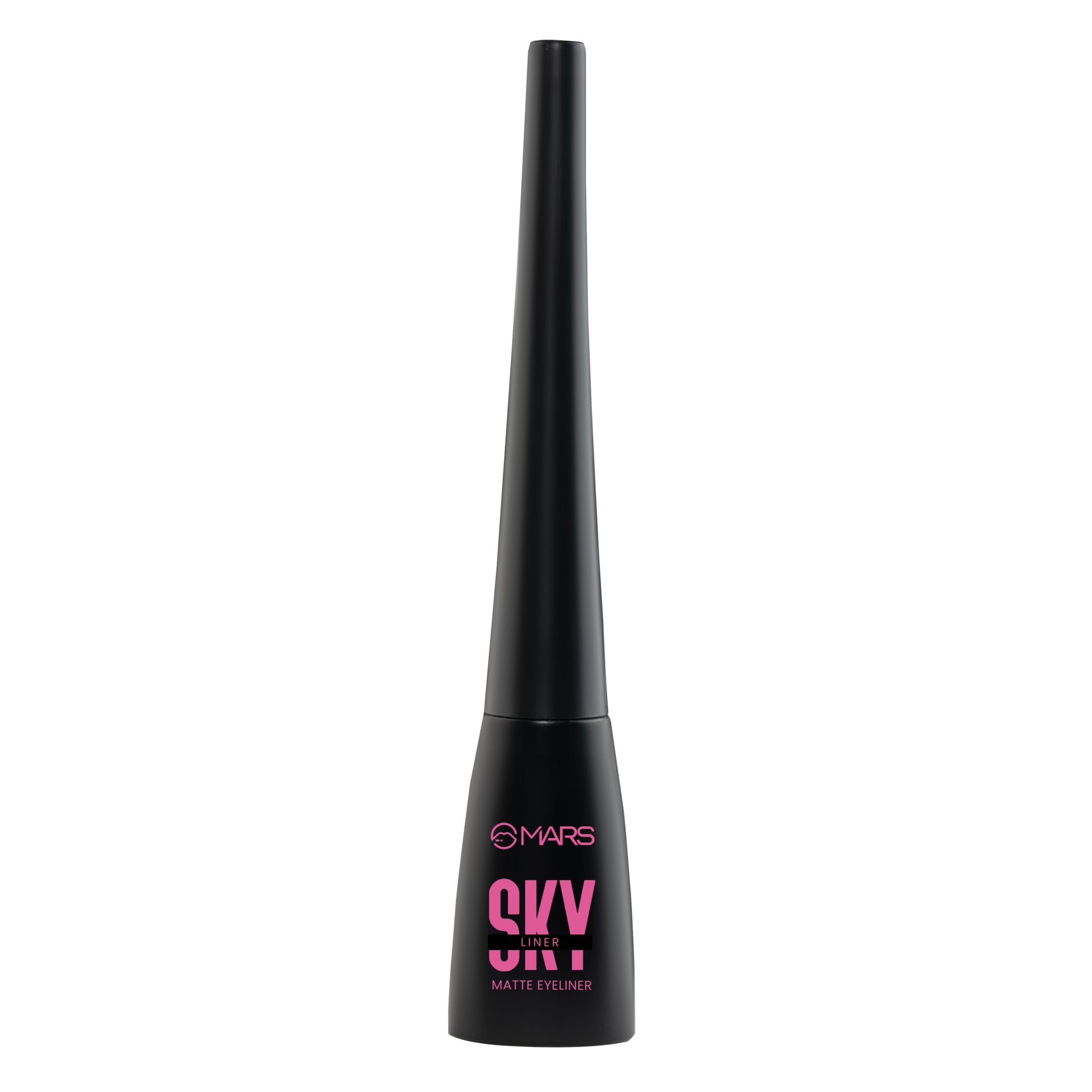 MARS Skyliner Liquid Matte Eyeliner for Women delivers precise application with long-lasting, water-resistant, smudge-proof, and transfer-proof wear up to 12 hours. Features matte finish in 4.5ml Black shade—perfect for bold, all-day eye looks.