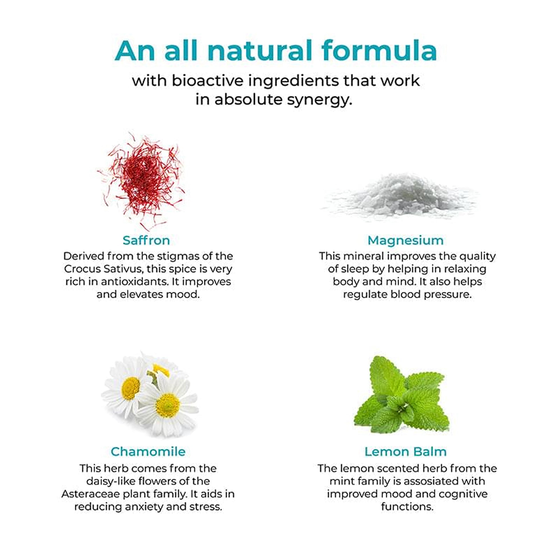 The formulation is designed to support emotional balance and stress resilience by reducing psychological and physiological stress responses. It promotes a sense of calm and clarity without causing drowsiness, making it suitable for use during the day or in high-pressure situations.