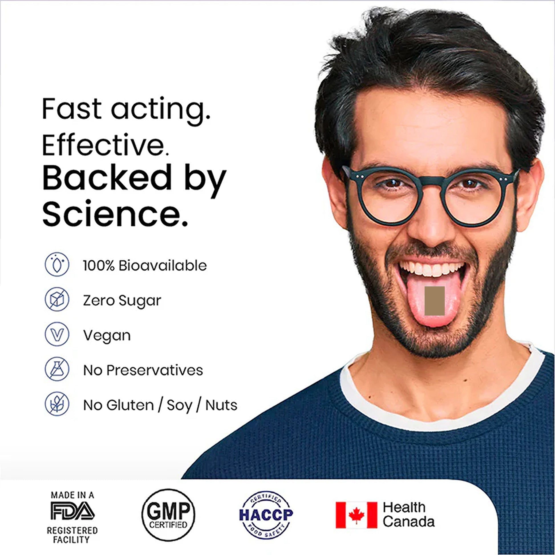 Convenient oral strip format designed for quick dissolution and easy daily use.