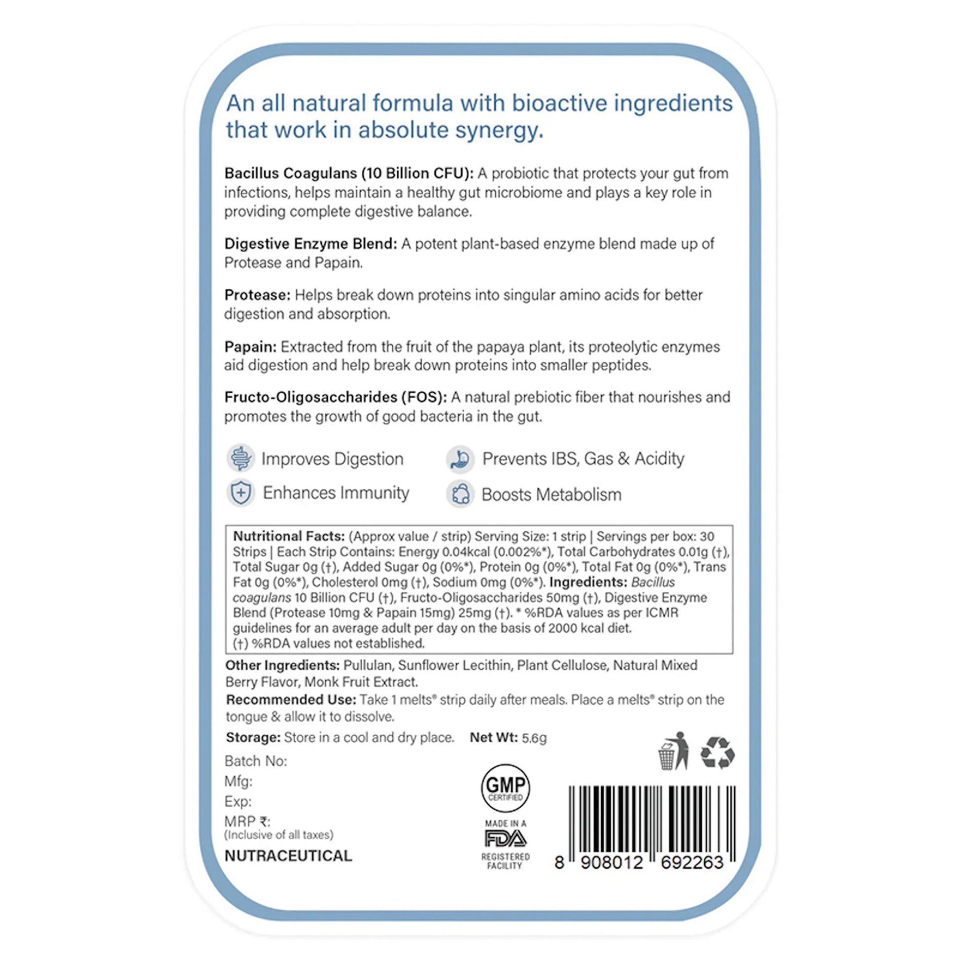 Delivered in a fast-dissolving oral strip format, this supplement offers a convenient alternative to traditional digestive tablets or capsules. With regular use, it is designed to help maintain digestive comfort and support overall gut function as part of a balanced lifestyle.