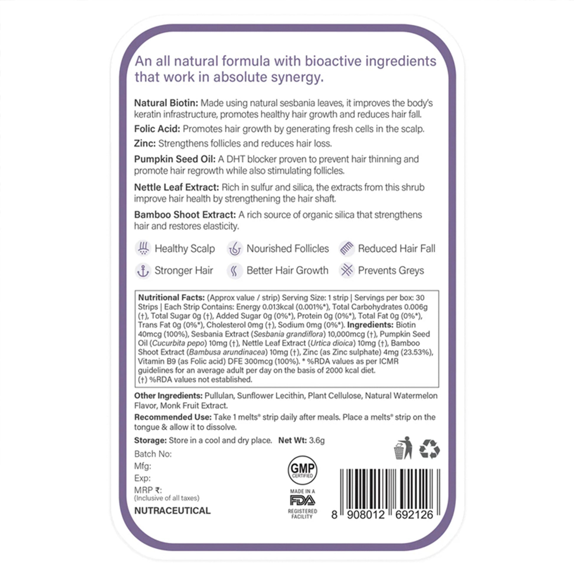 | Product Type | Hair Health Oral Dissolving Strips |