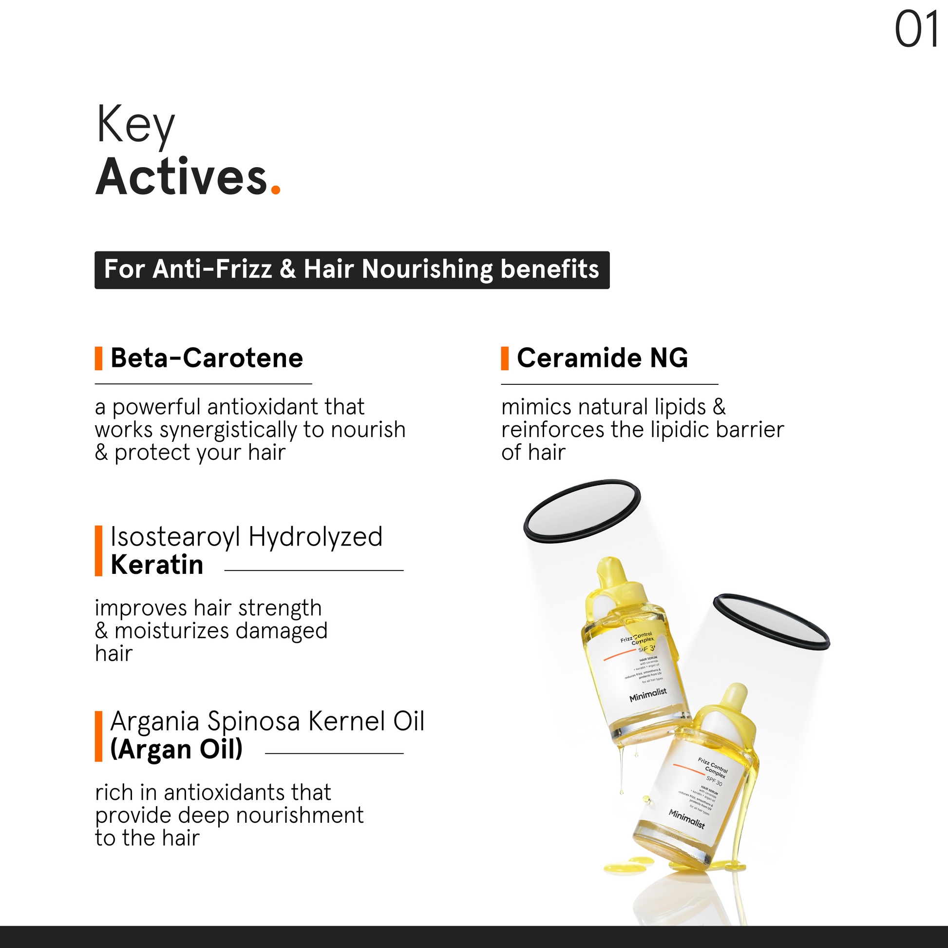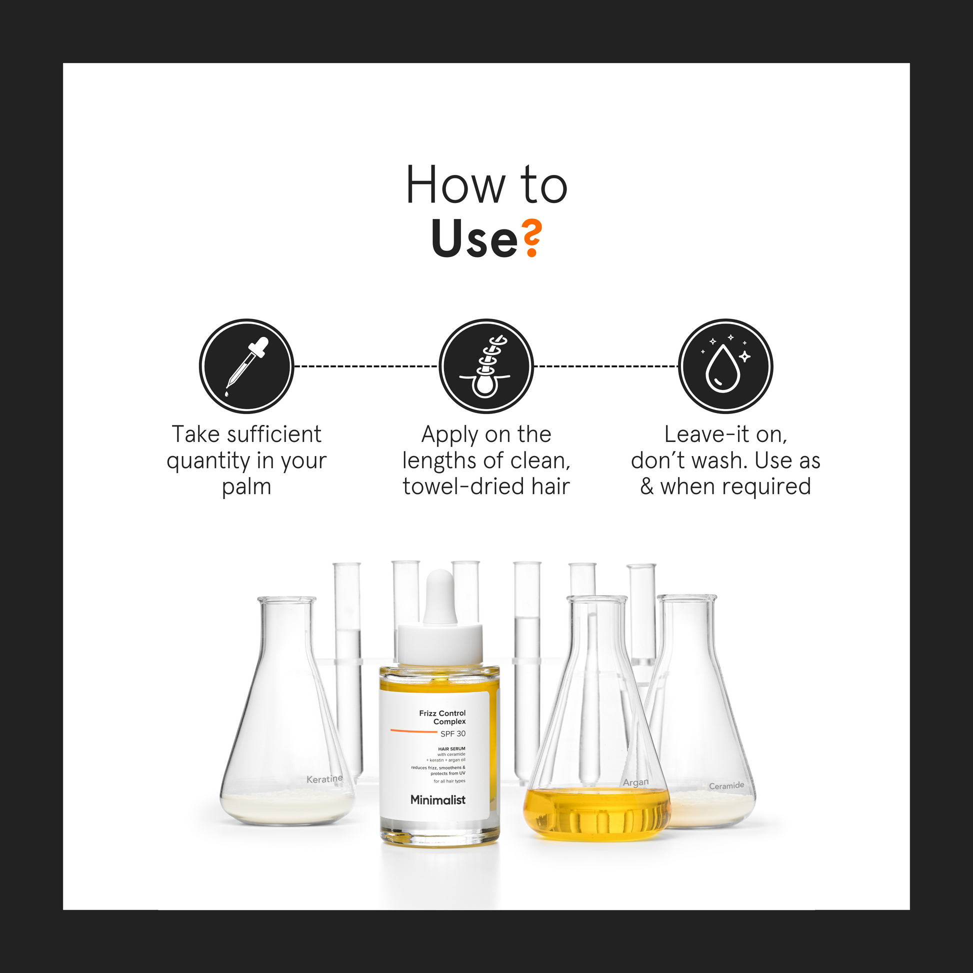 Frizz Control Complex SPF 30 Hair Serum, enriched with keratin, ceramide & argan oil, is designed to combat frizz, enhance shine, and shield hair from UV damage. Keratin strengthens, ceramide repairs, argan oil nourishes your hair. Ideal for all hair types, it provides deep nourishment and protection. Apply to any hair for an instant sleek look and sun defense. Perfect for achieving smooth, soft, and frizz-free hair.