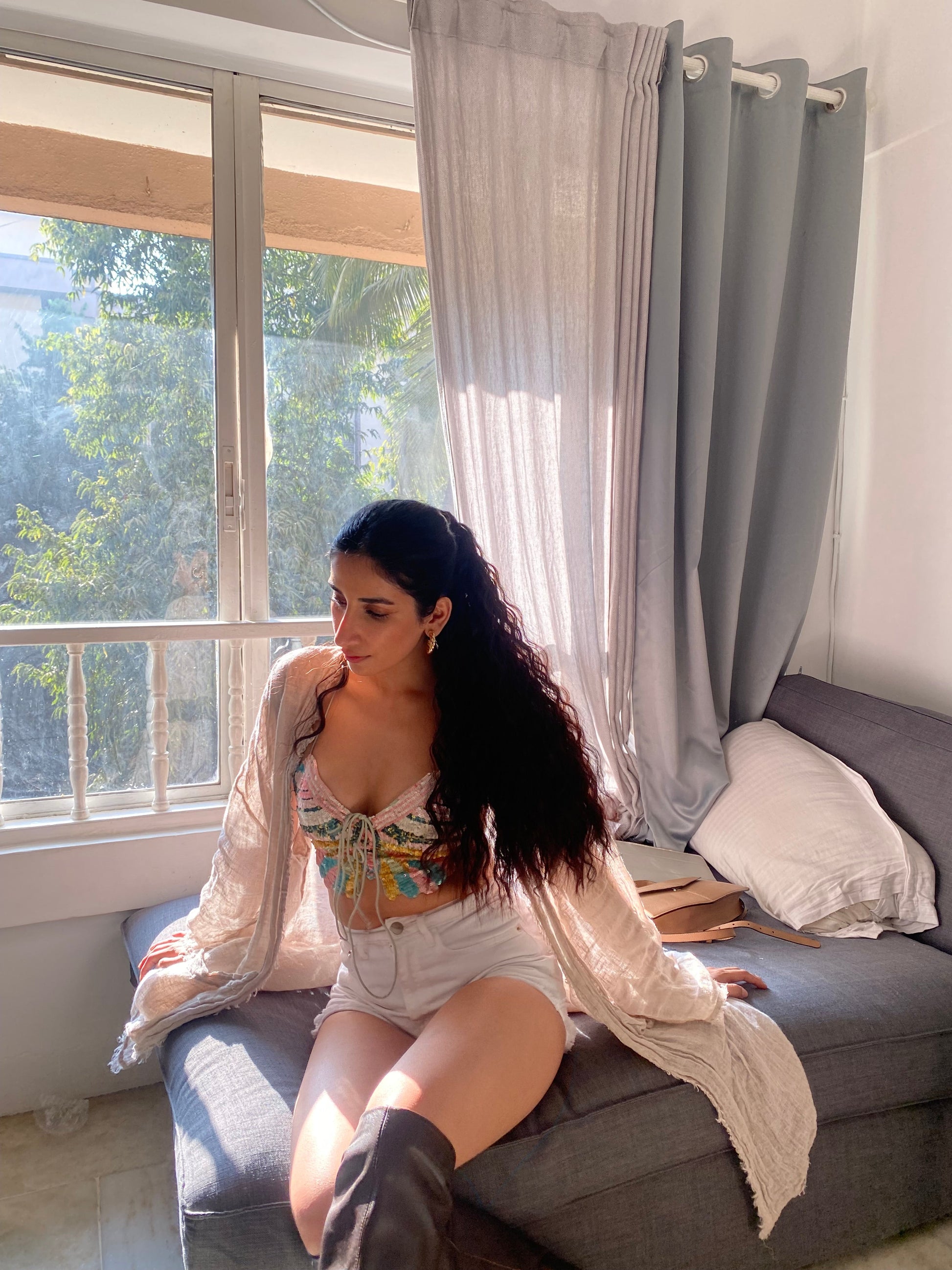 It is a gorgeous really long crimped wavy wrap ponytail , you may make ponytail of your own hair and wrap this mirror hair ponytail on top of it. Easy to wear .