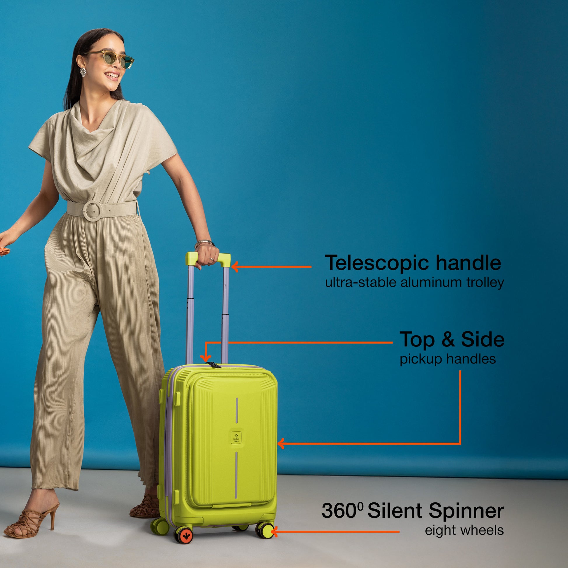 Nasher Miles Alexandria Hard-Sided Polypropylene TSA Lock Cabin Luggage with Laptop Compartment 20 inch | 55cm | 8 Wheels Small Trolley Bag for Travel | Suitcase (Green Purple)