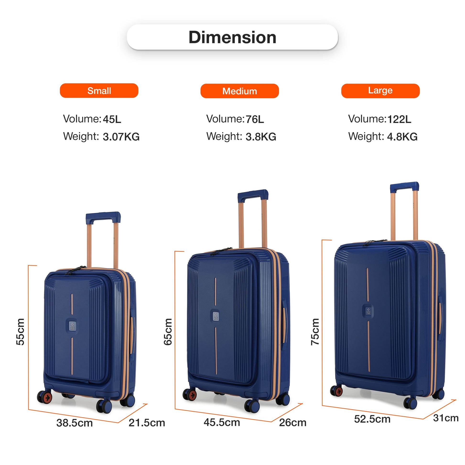 Nasher Miles Alexandria Hard-Sided Polypropylene TSA Lock Cabin Luggage with Laptop Compartment 20 inch | 55cm | 8 Wheels Small Trolley Bag for Travel | Suitcase (Navy Blue Peach)