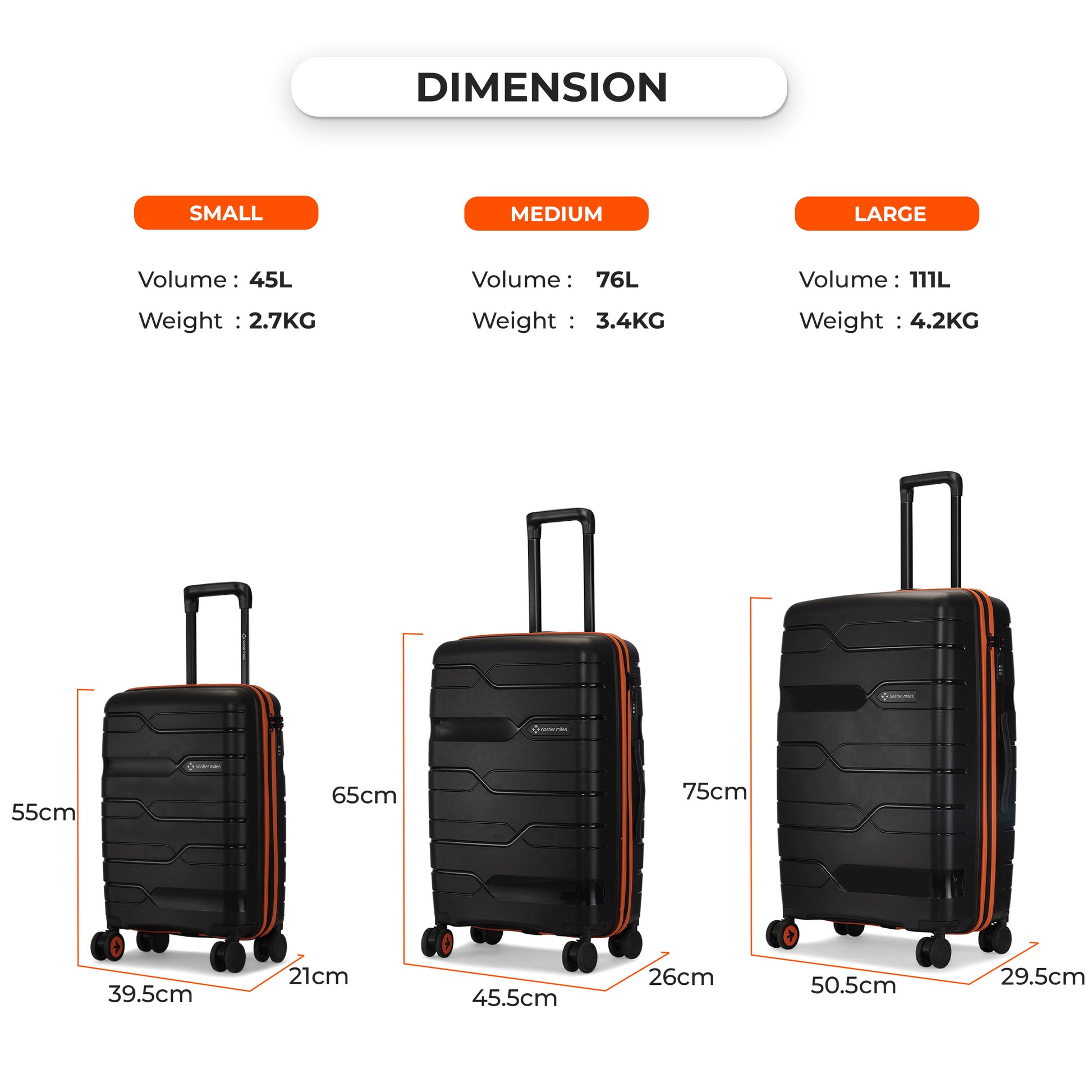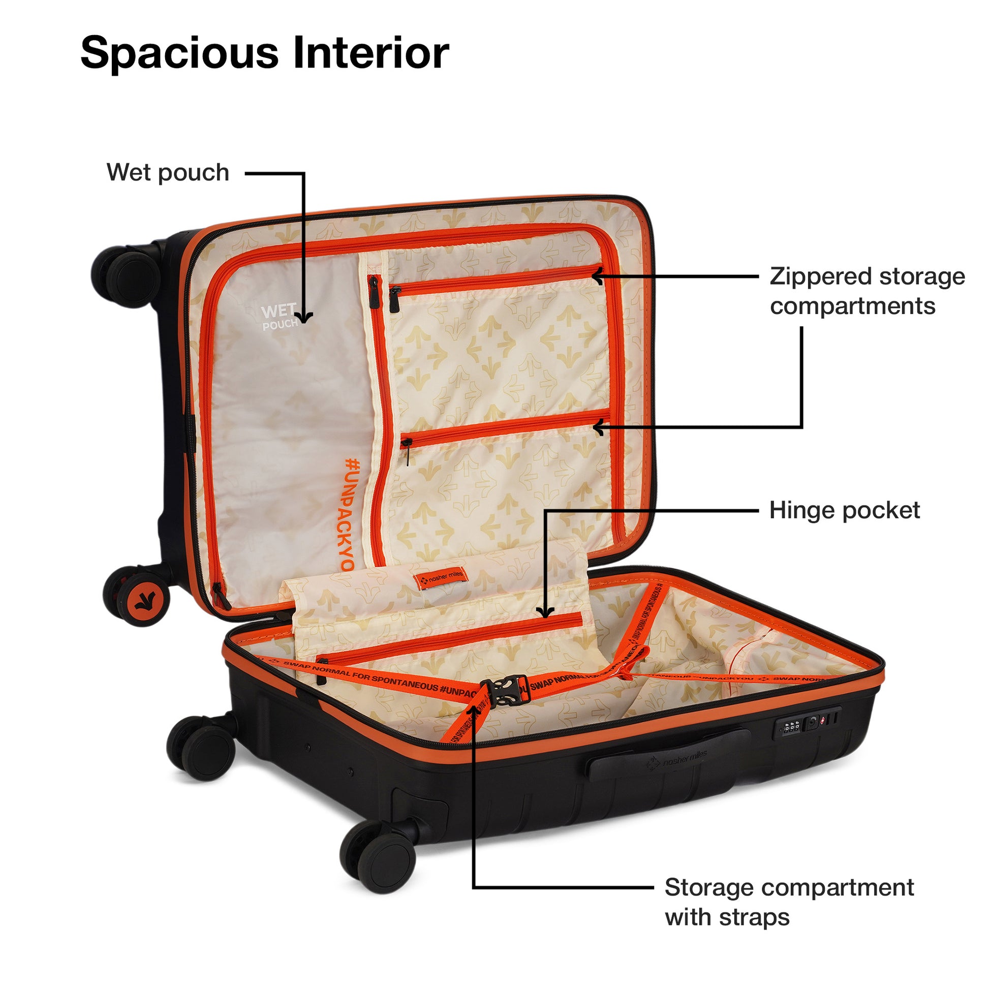 Nasher Miles Cannes Hard-sided Polypropylene Check-In Luggage Black Orange 24 inch | 65 cm Medium Trolley bag