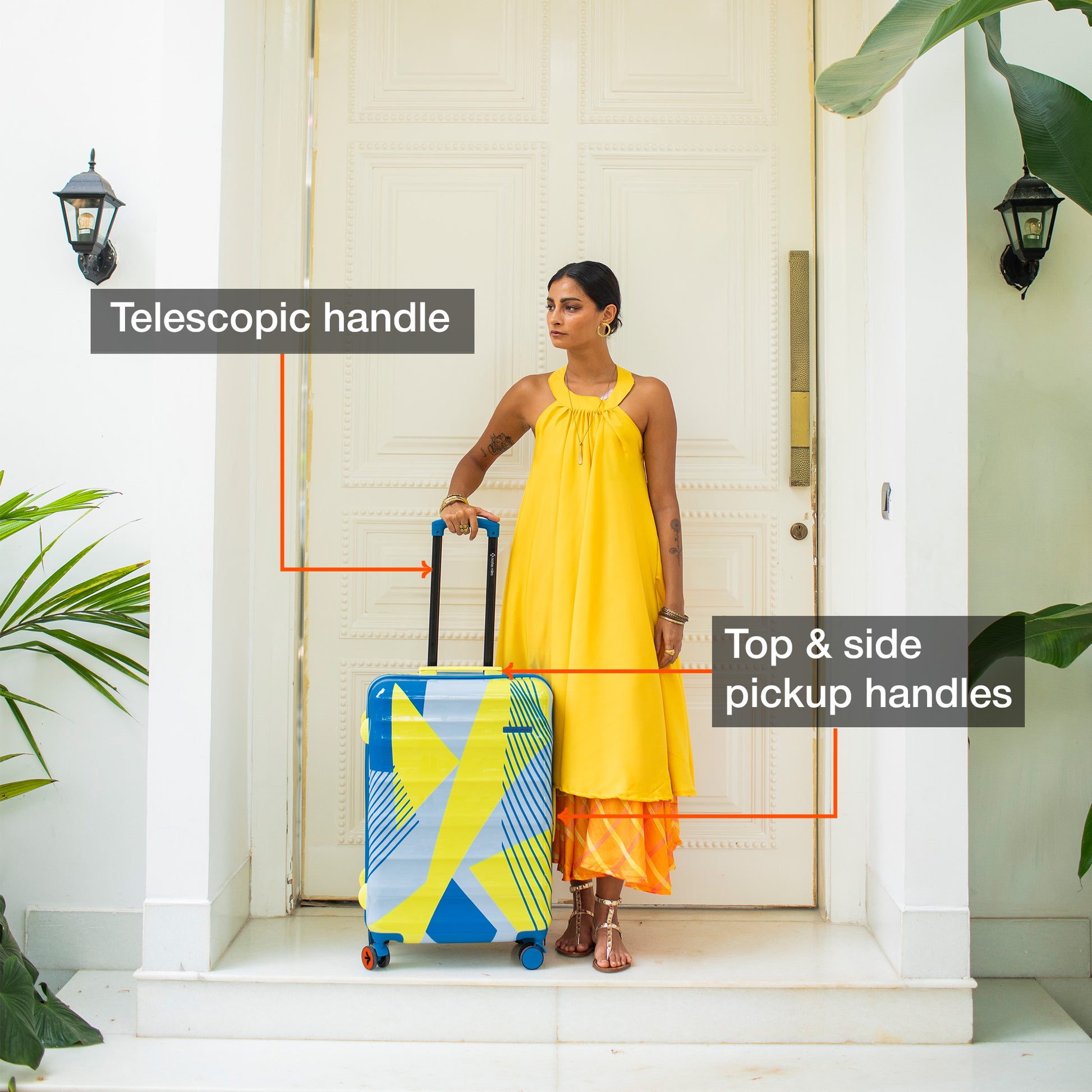 The telescoping handle ensures comfortable manoeuvring and easy pick-up, while additional top and side carry handles offer added convenience in lifting. 8 silent spinner wheels for a 360-degree rotation, ensuring smooth movement in any direction.