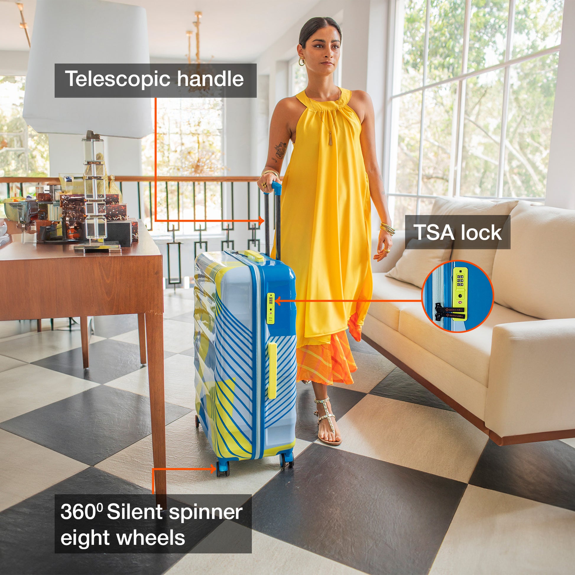 Lightweight Large (L) - 28-inch hard-side check-in luggage is extremely lightweight and perfect for longer trips lasting over a week. Features a stylish printed design to add flair to your journey.