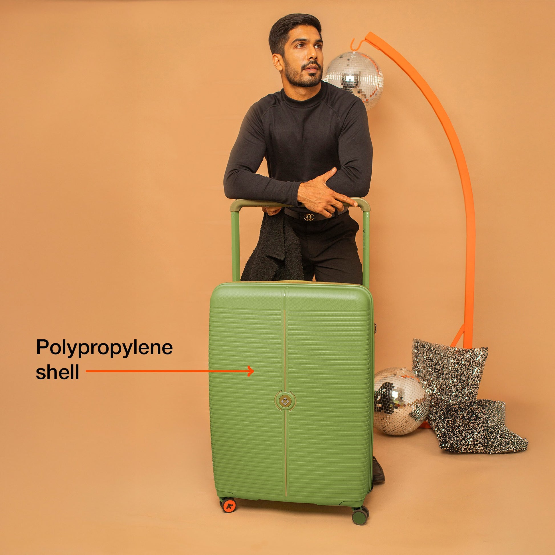 Nasher Miles Dubai TSA Lock Hard-Sided Polypropylene Check-in Luggage 24 inch | 65cm | 8 Wheels Medium Trolley Bag for Travel | Suitcase (Green Brown)